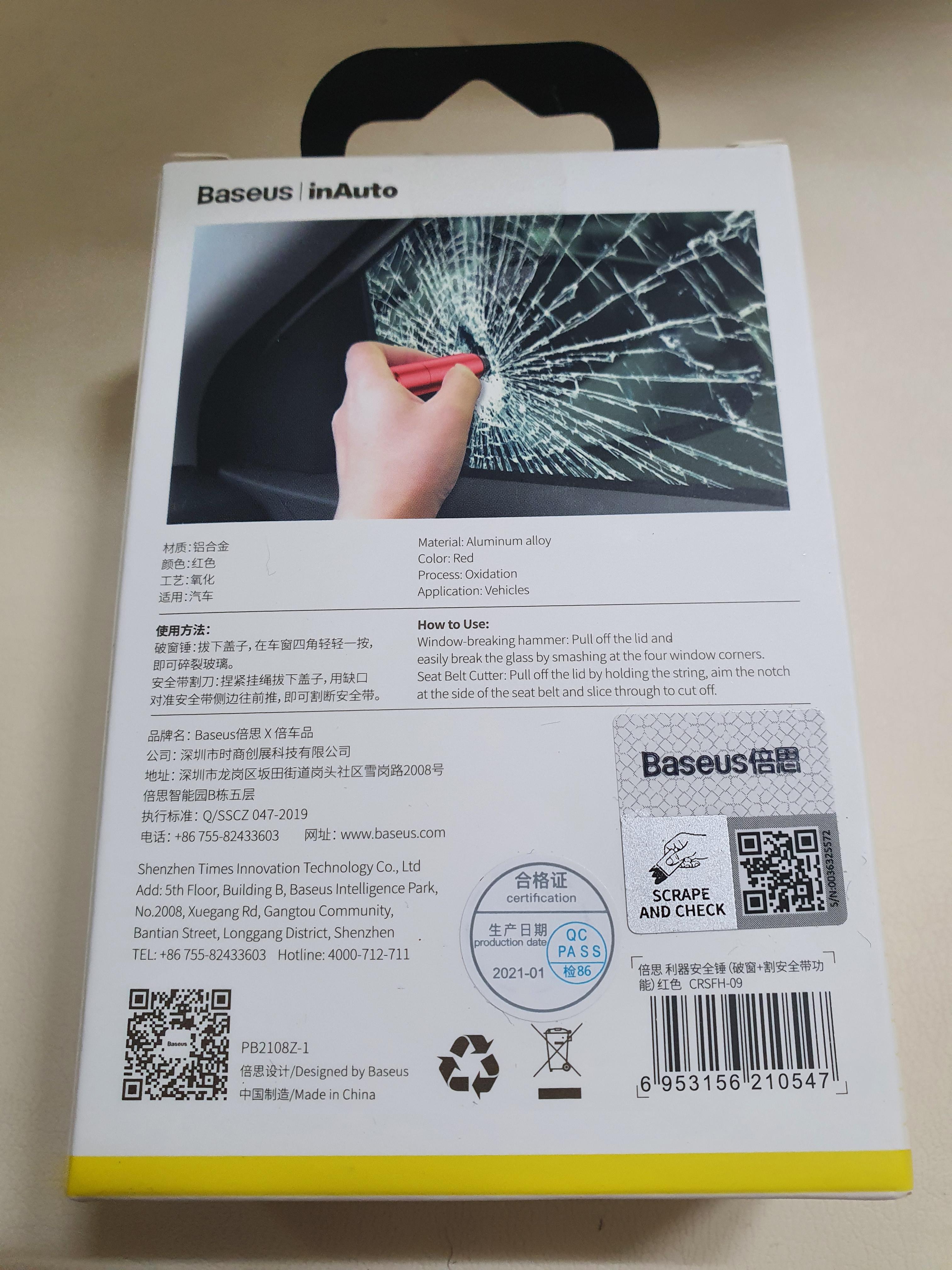 베이스어스 차량용 비상용 유리창 파괴 탈출 안전벨트 커터 망치