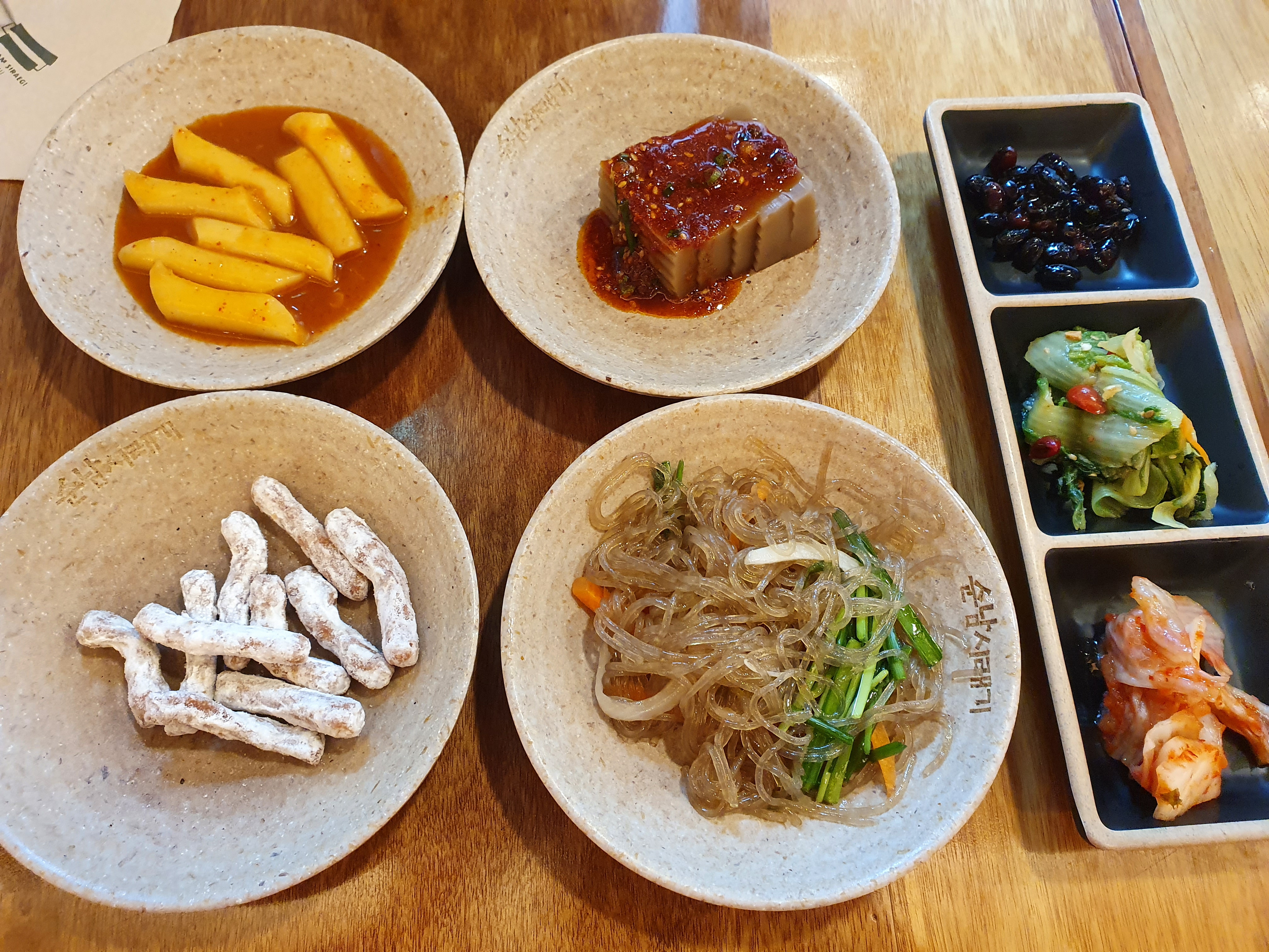 음식을 주문하고 주문이 나오는 동안 샐러드바에서 떡볶이와 잡채, 도토리묵, 전통과자 그리고 밑반찬을 가지고 왔습니다. 맛있어서 몇 번을 더 가져다 먹었습니다.