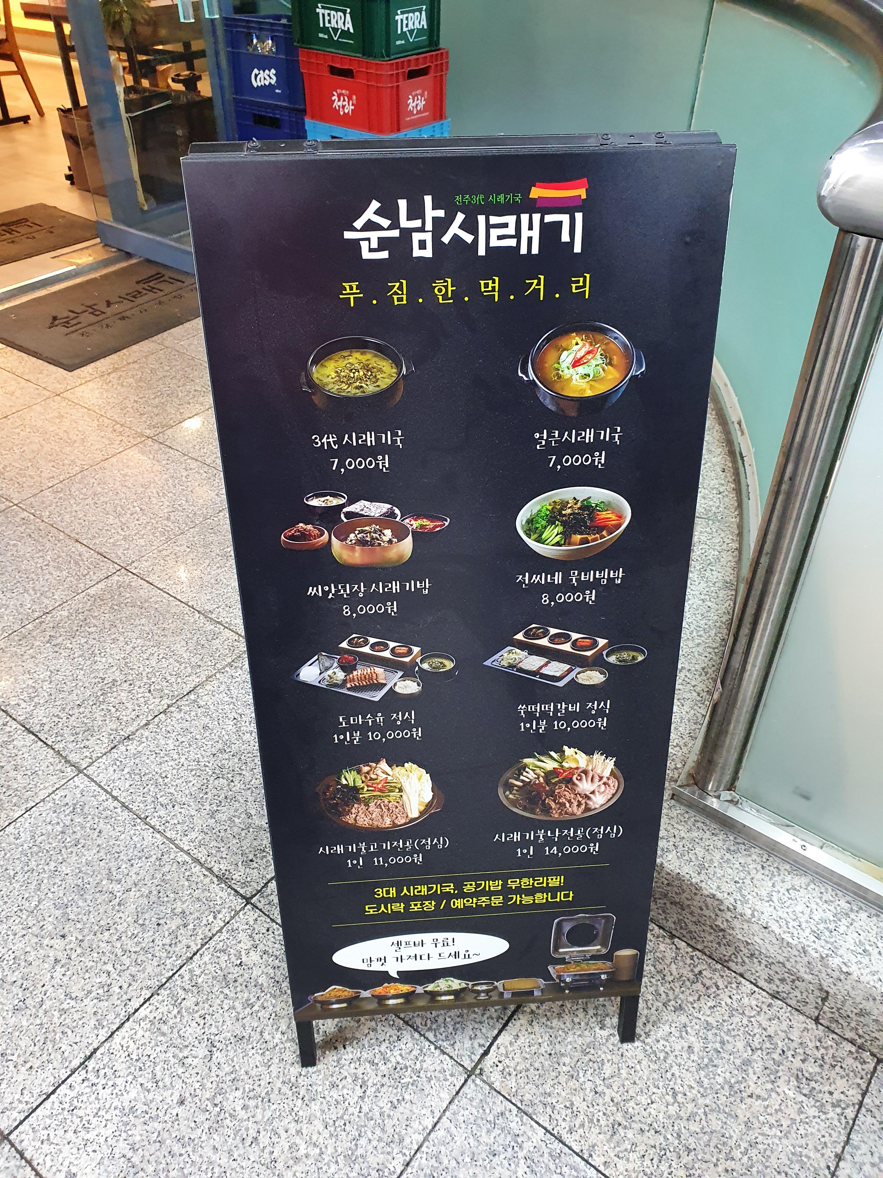 날씨가 쌀쌀해져서 따뜻한 국물이 먹고 싶어 순남시래기국에 다녀왔습니다.