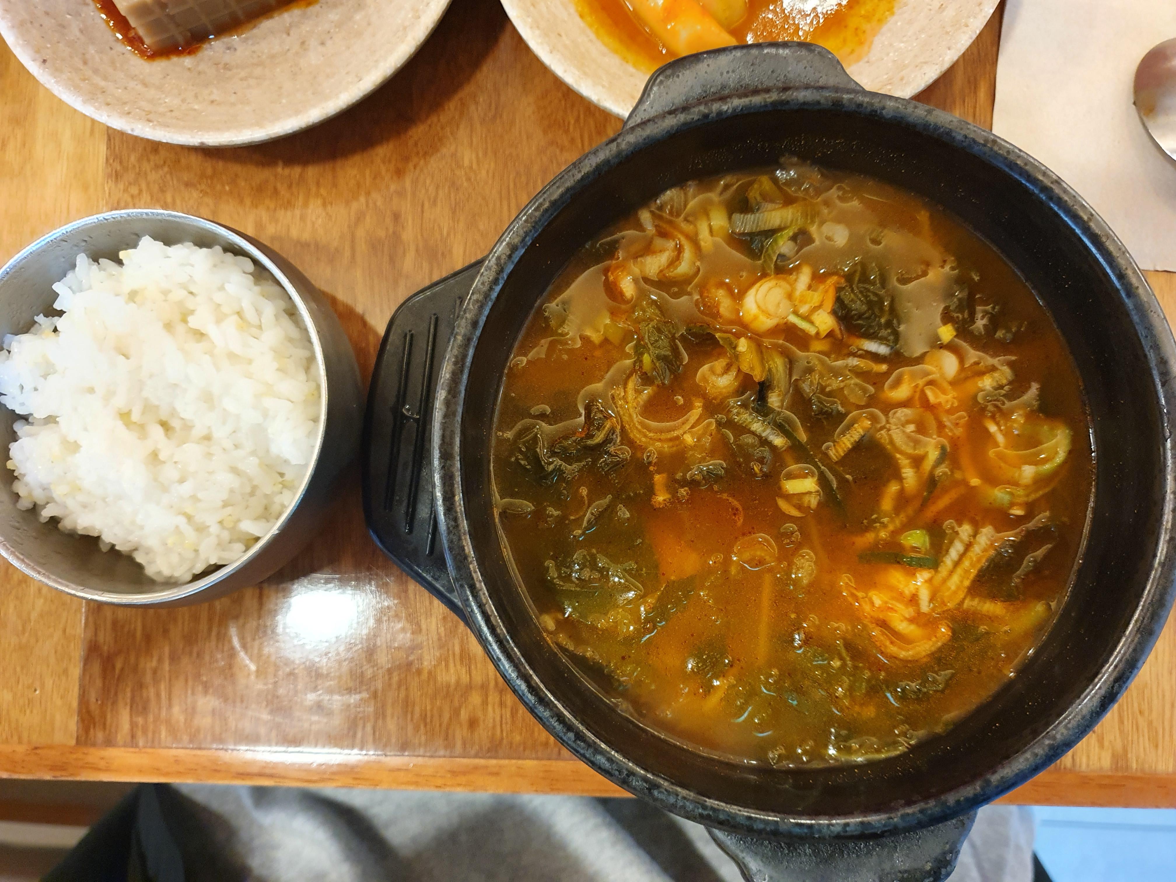 날씨가 추워서 얼큰한 시래기국도 시켜보았습니다. 얼큰함 때문에 몸이 금방 따뜻해지는 느낌입니다.
