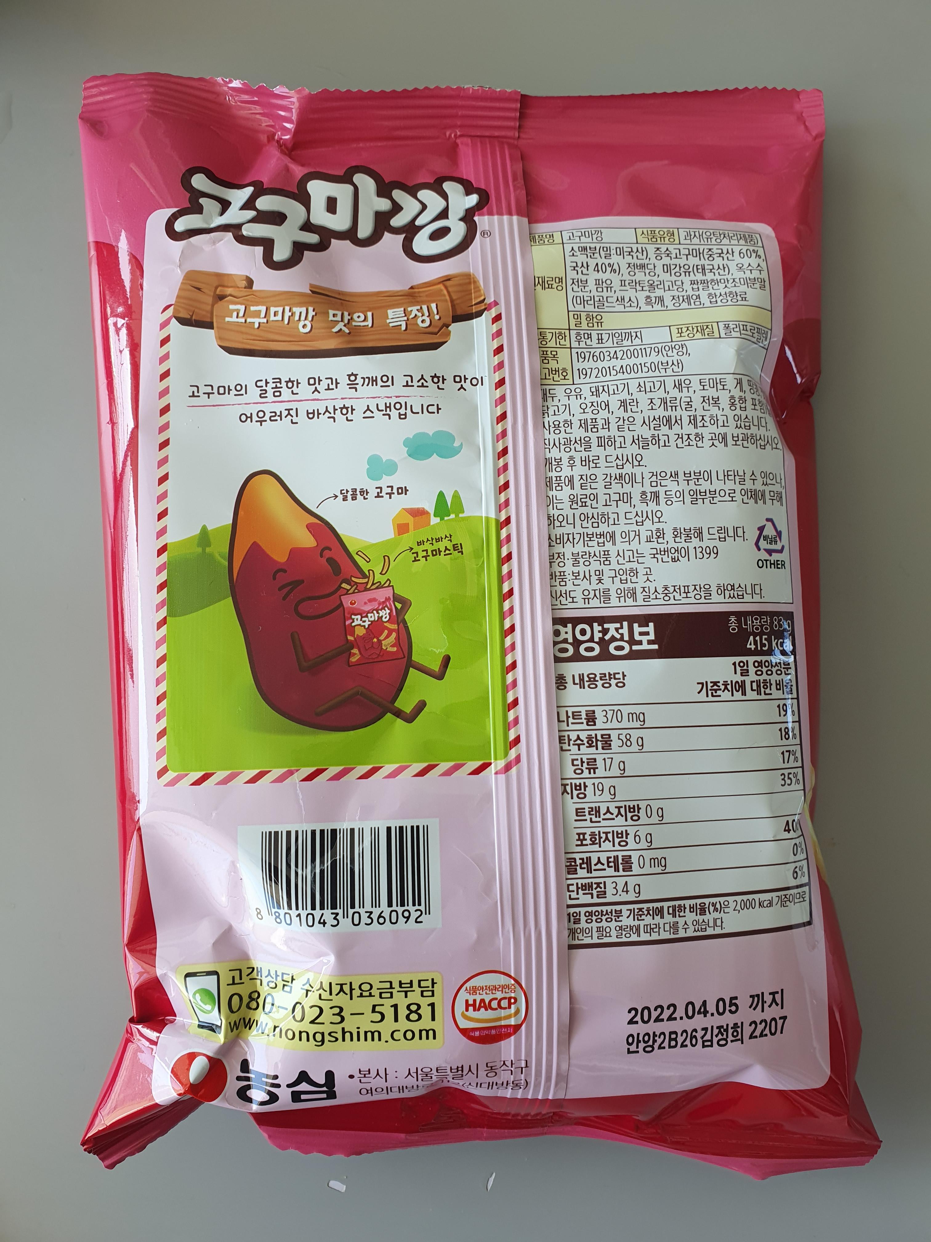 오늘은 농심에서 나온 고구마깡을 먹어보았습니다. 1일1깡이 유행하던게 엊그제 같은데 요즘도 1일1깡을 즐기는 분들이 계실지 궁금하네요~ 방금 유튜브에 다녀와보니 여전히 1일1깡, 2깡을 즐기고 있는 분들이 있습니다. 대단합니다.
