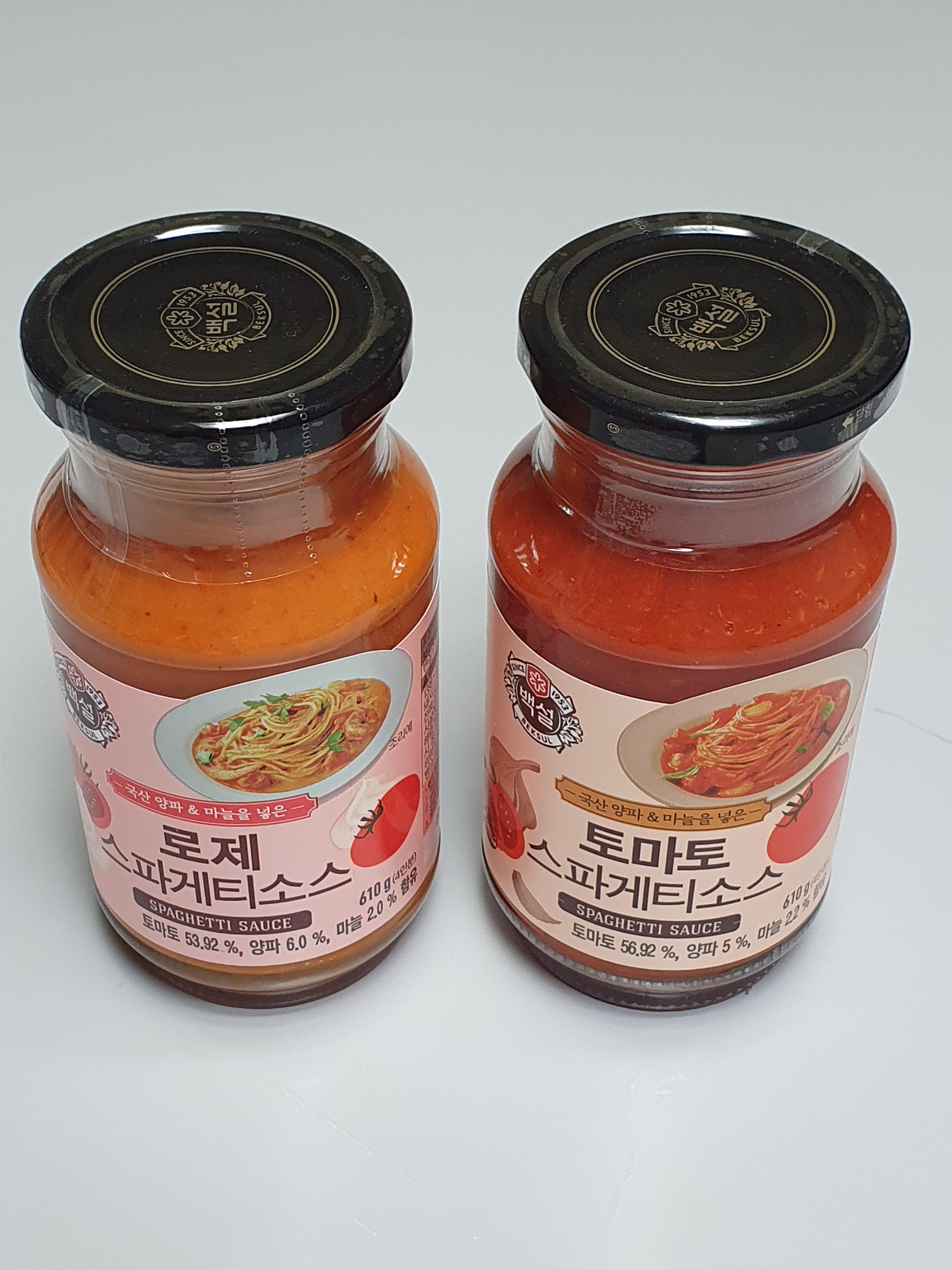 오늘은 오랜만에 집에서 스파게티를 만들어보았습니다. 마트에서 1+1 행사로 백설 로제스파게티 소스와 토마토 스파게티 소스를 구입해왔습니다.