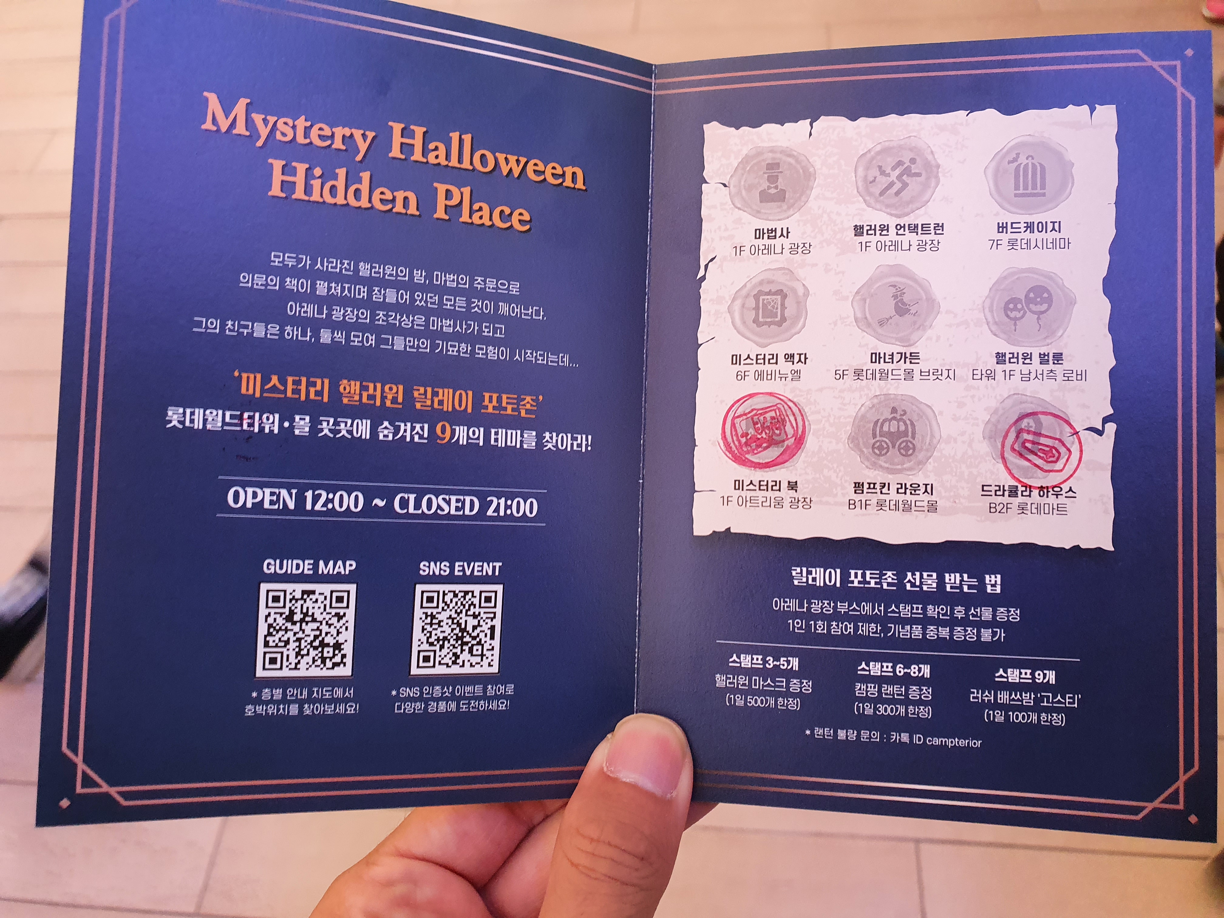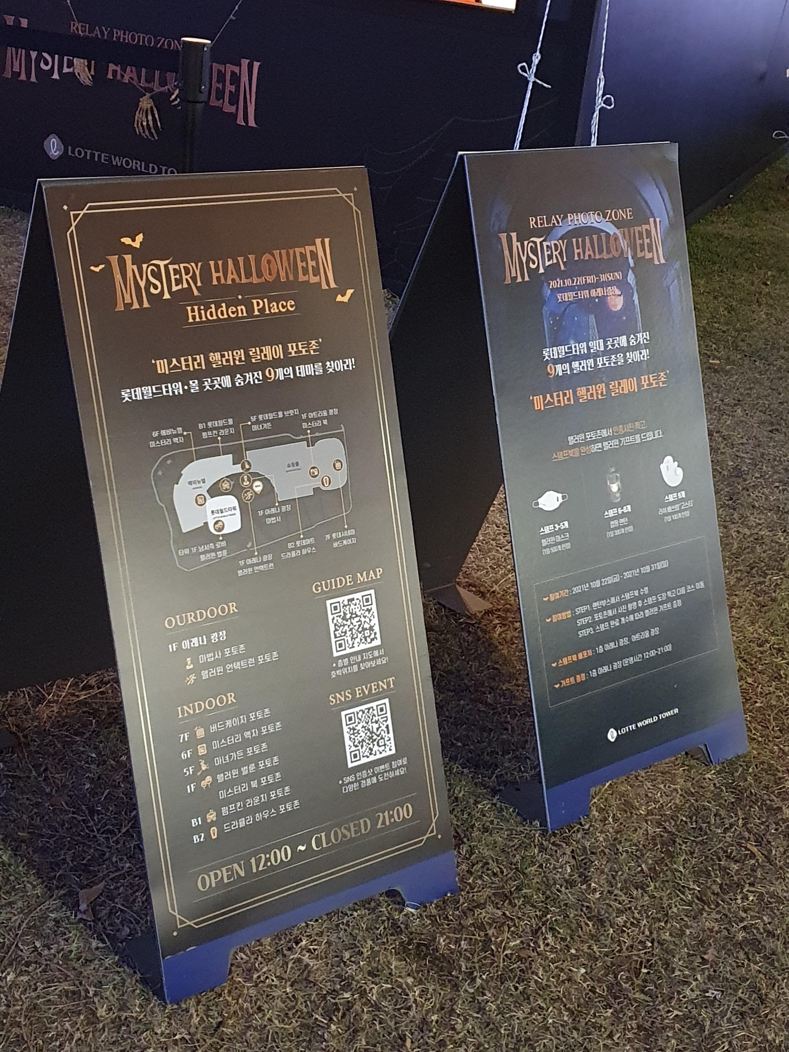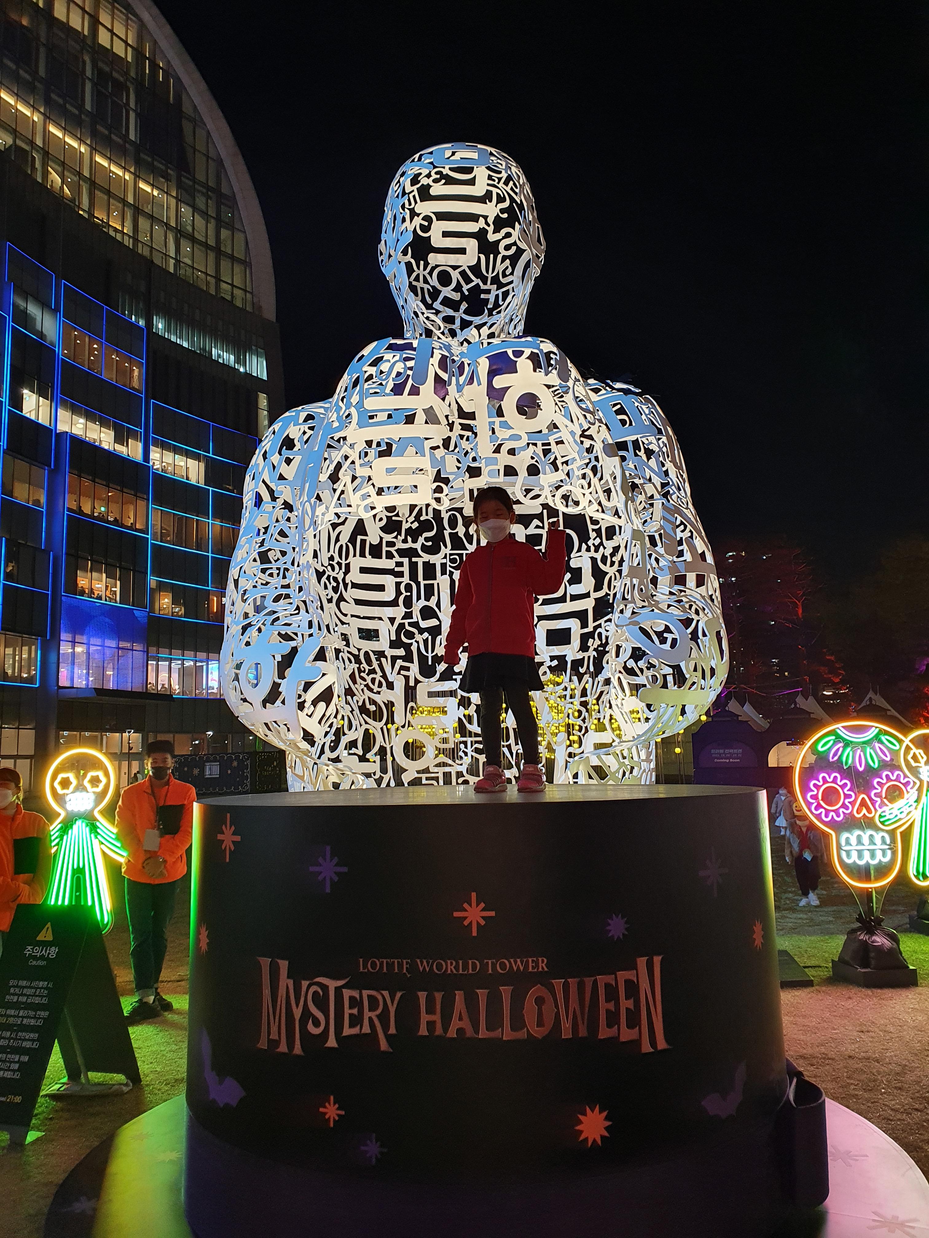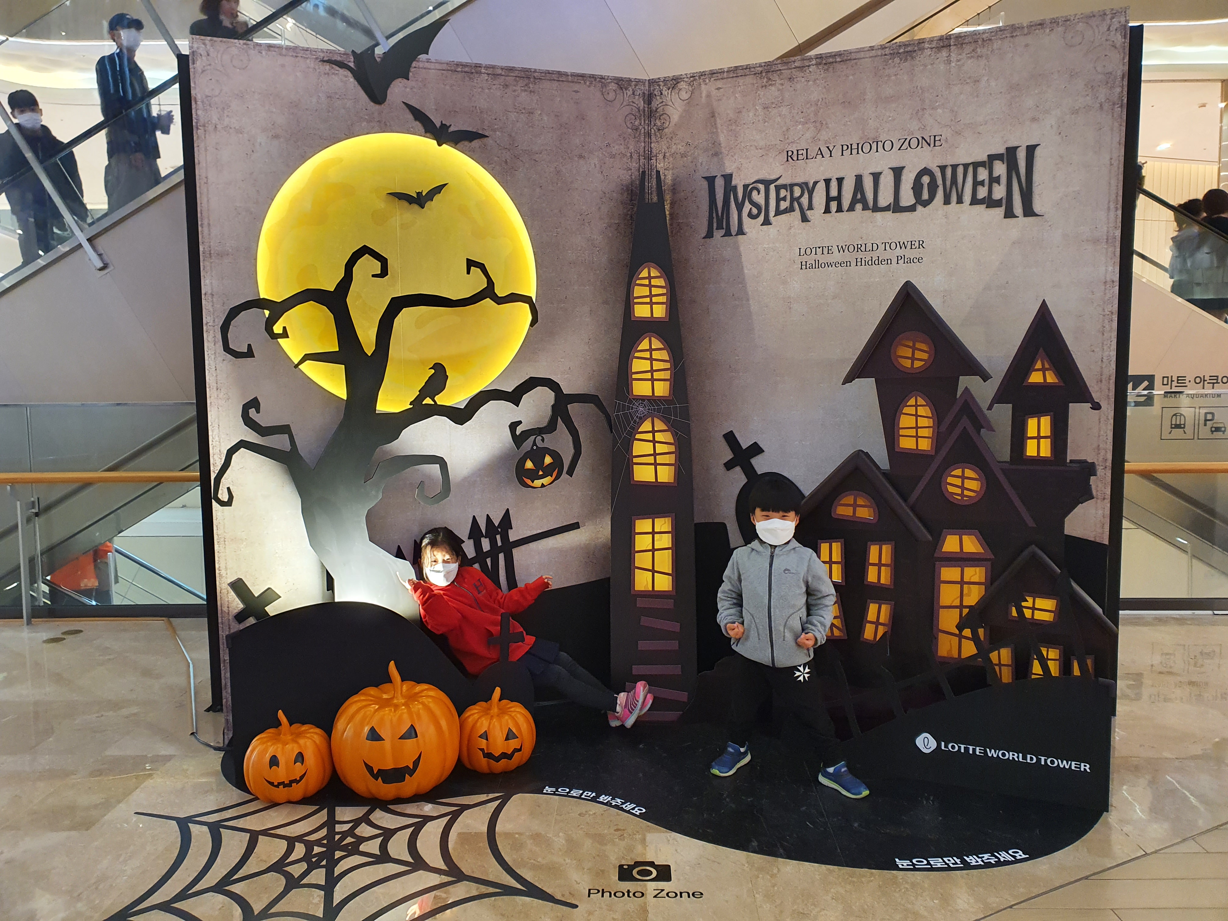 이번 주말에 롯데월드타워에 갔더니, "미스터리 할로윈 릴레이 포토존"이 있어서 몇몇 포토존에서 사진을 찍고 왔습니다. 9개 포토존에서 사진을 찍어야하는데, 4곳만 사진을 찍고 다 완성하지 못했더니 다시 가자고 하네요!