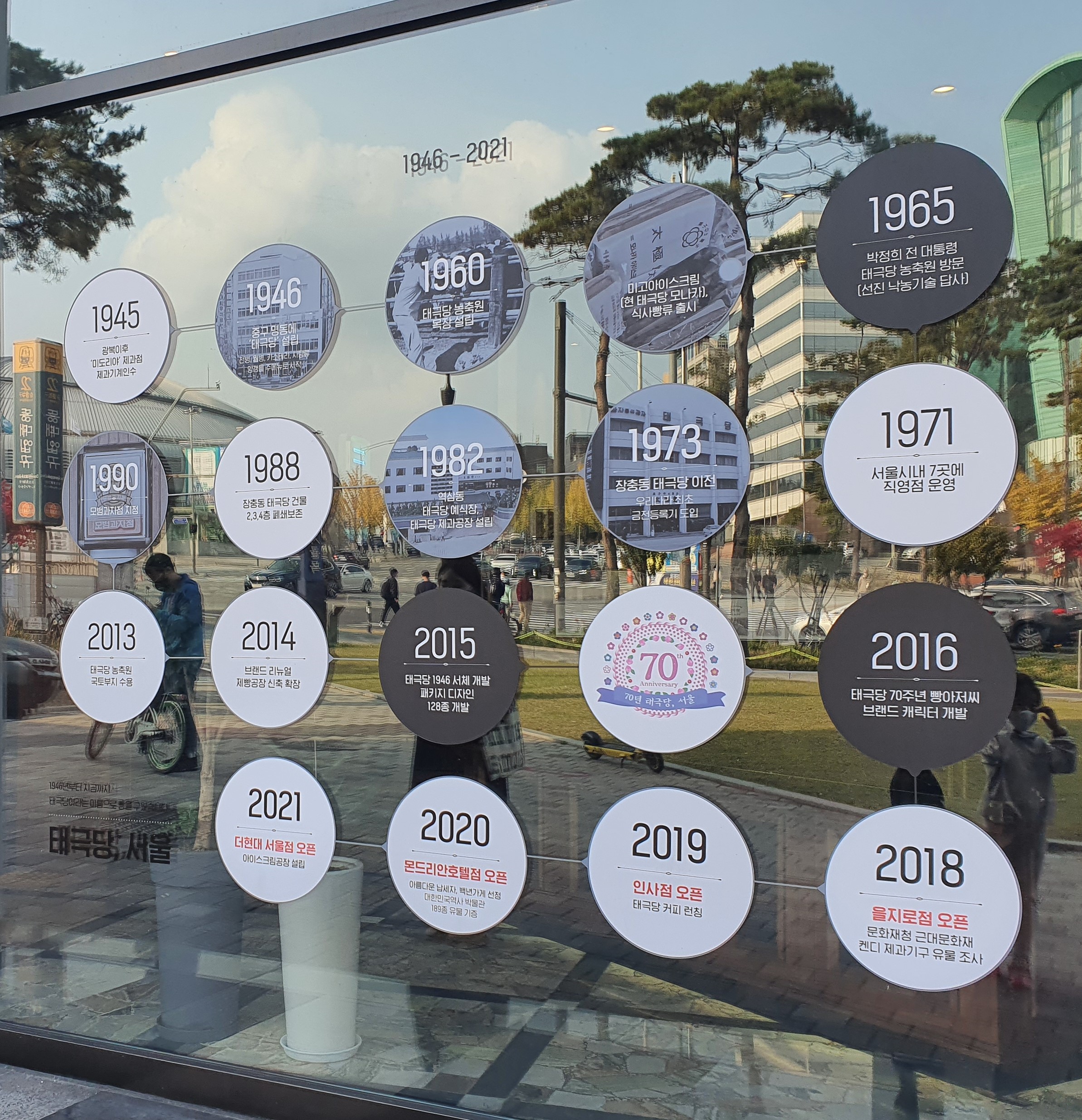 태극당의 역사가 연도별로 적혀있습니다. 1945년 제과기계를 인수해서 1946년 태극당을 설립했다고합니다. 서울에서 가장 오래된 빵집이라고 불리는 이유가 있었네요! 역사와 전통이 있는 태극당의 빵은 어떤 빵들이 있을지 들어가보았습니다.