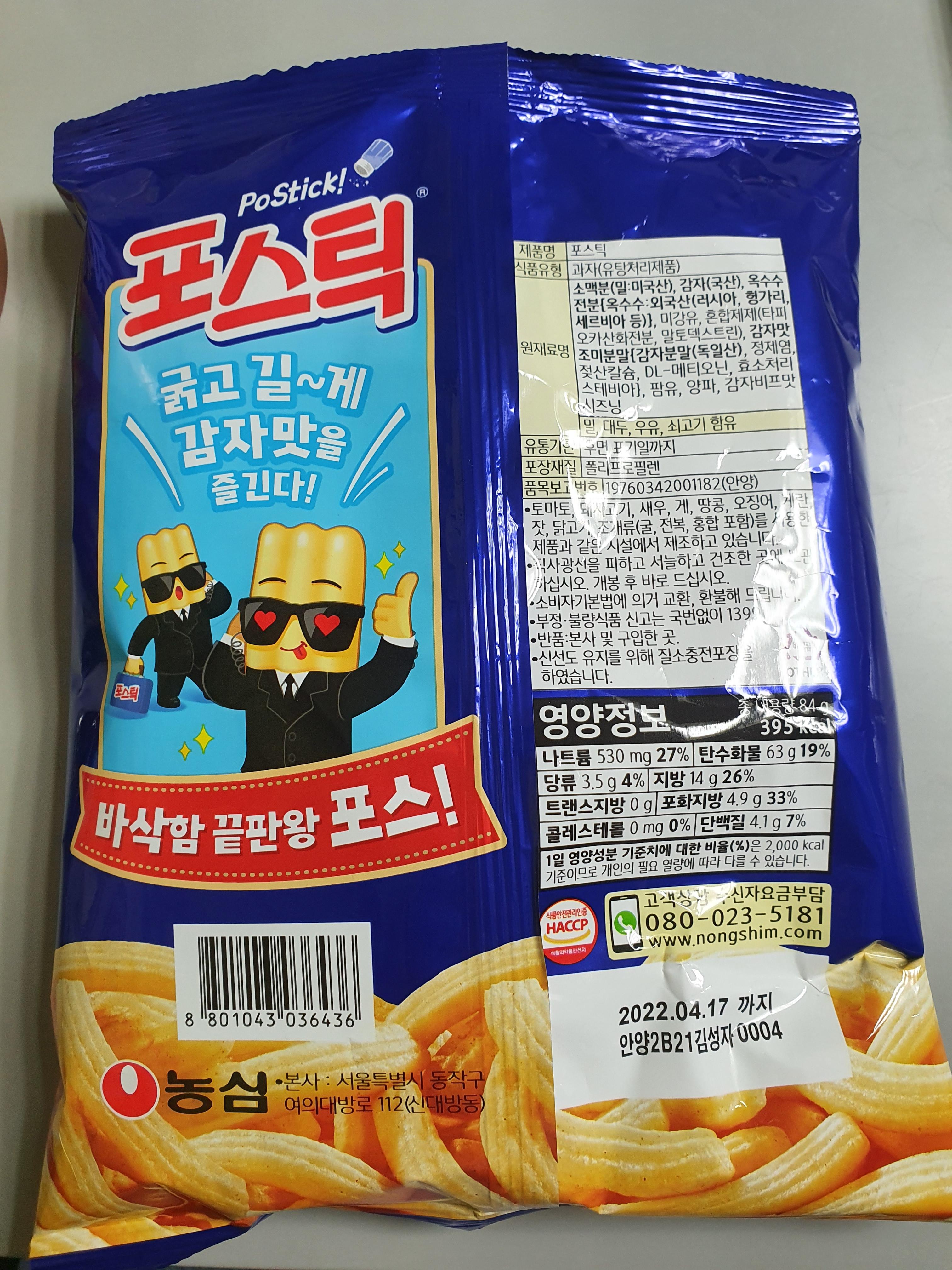 굵고 길게 감자맛을 즐긴다고하는데, 포스틱을 먹으면서 감자 과자라고 잘 생각해 본적이 없는거 같네요