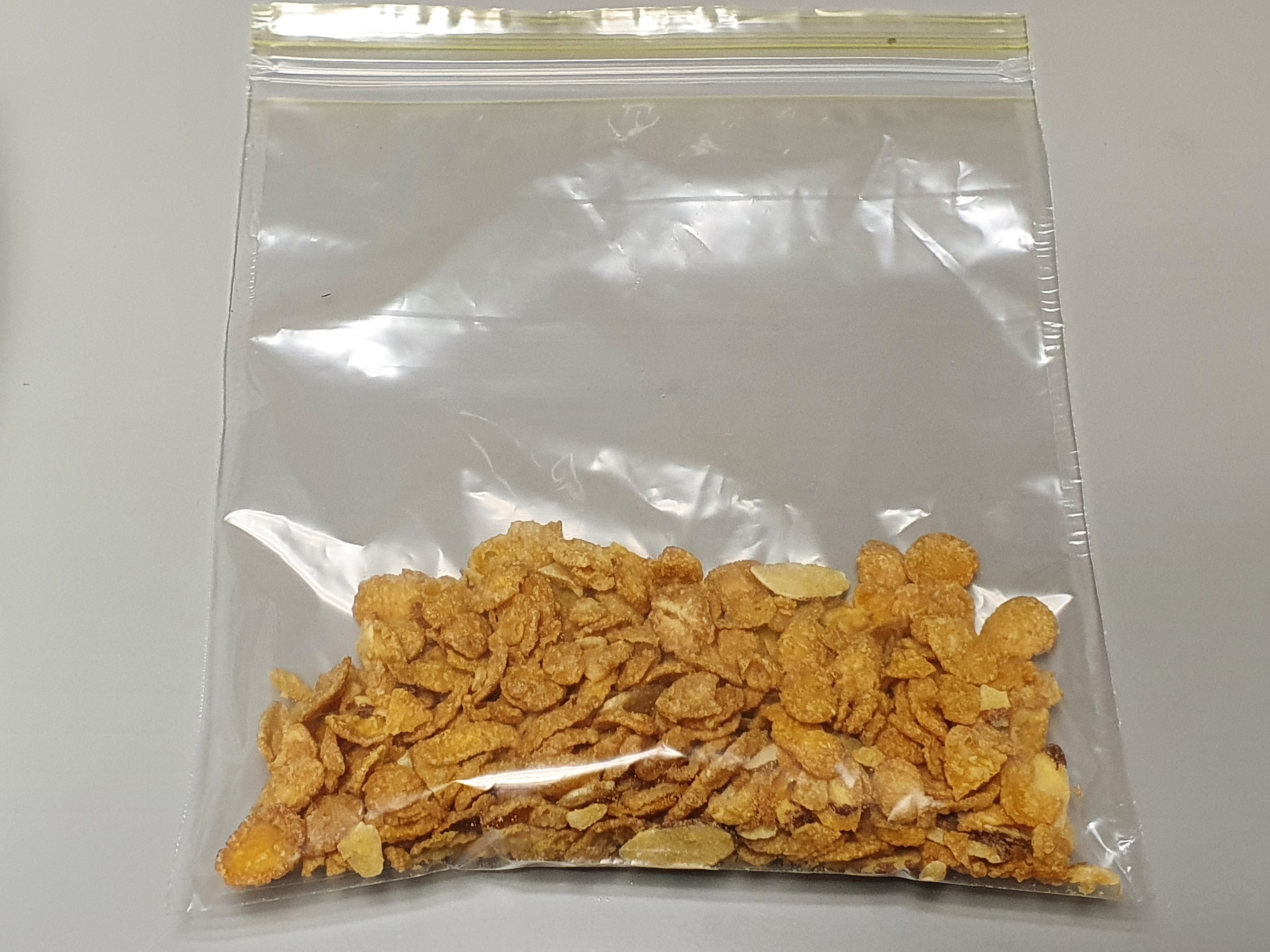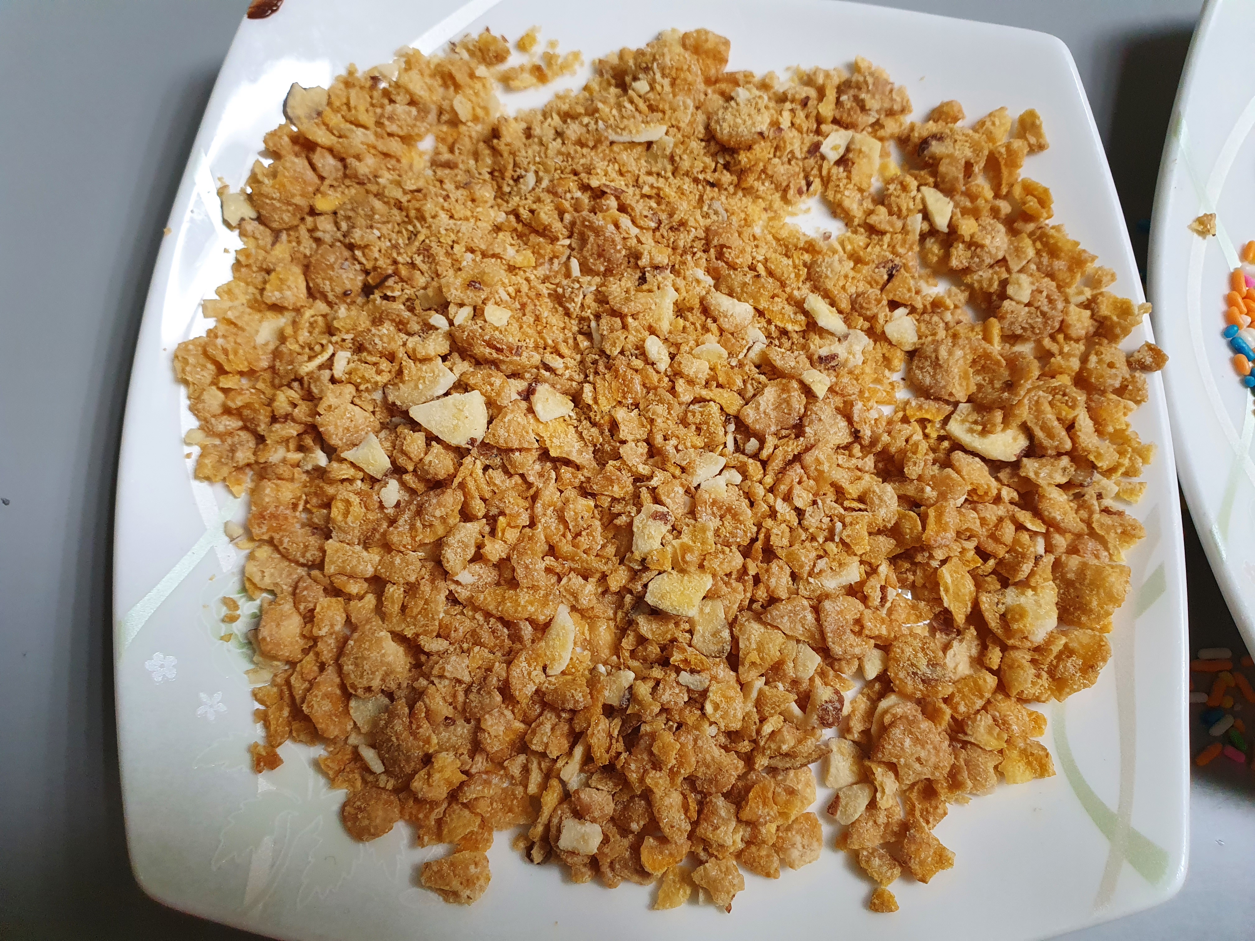 토핑들을 비닐에 넣고 부셔서 가루를 만들었습니다.