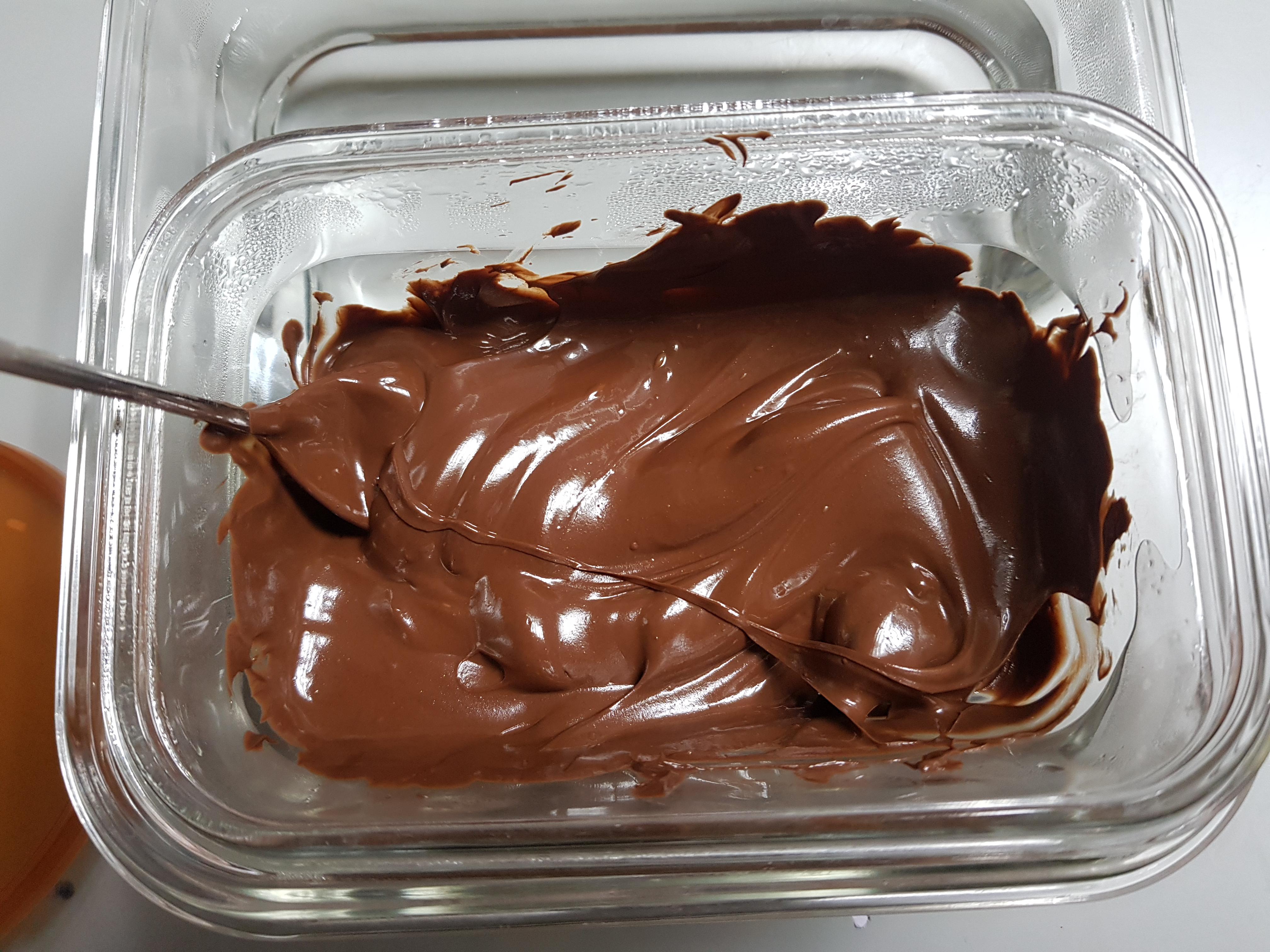 유리그릇에 초콜릿을 담고 따뜻한 물에 담아놓으면 서서히 초콜릿이 녹습니다.