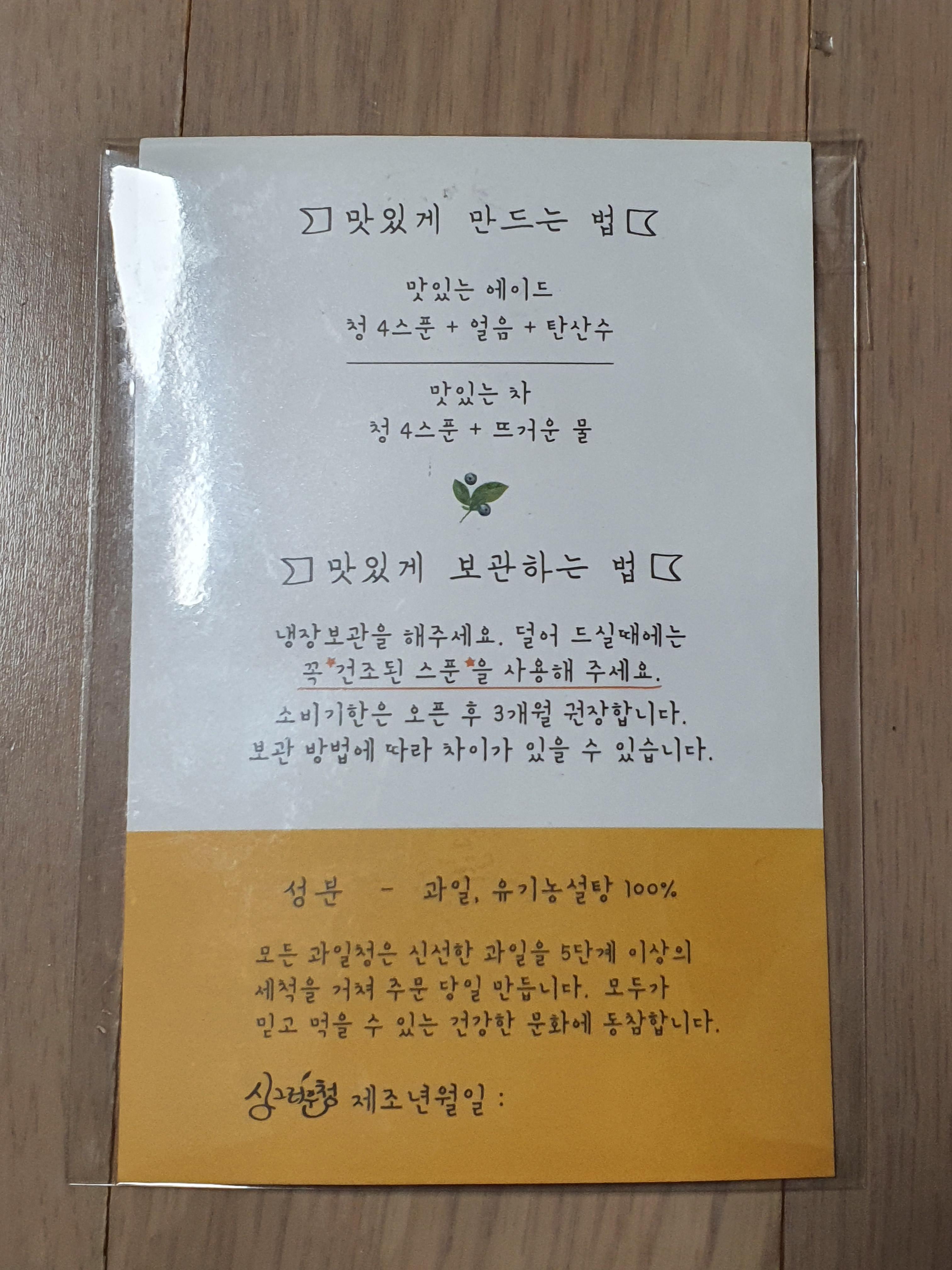 너무 맛이 있어서 수제청도 구입해보았습니다.