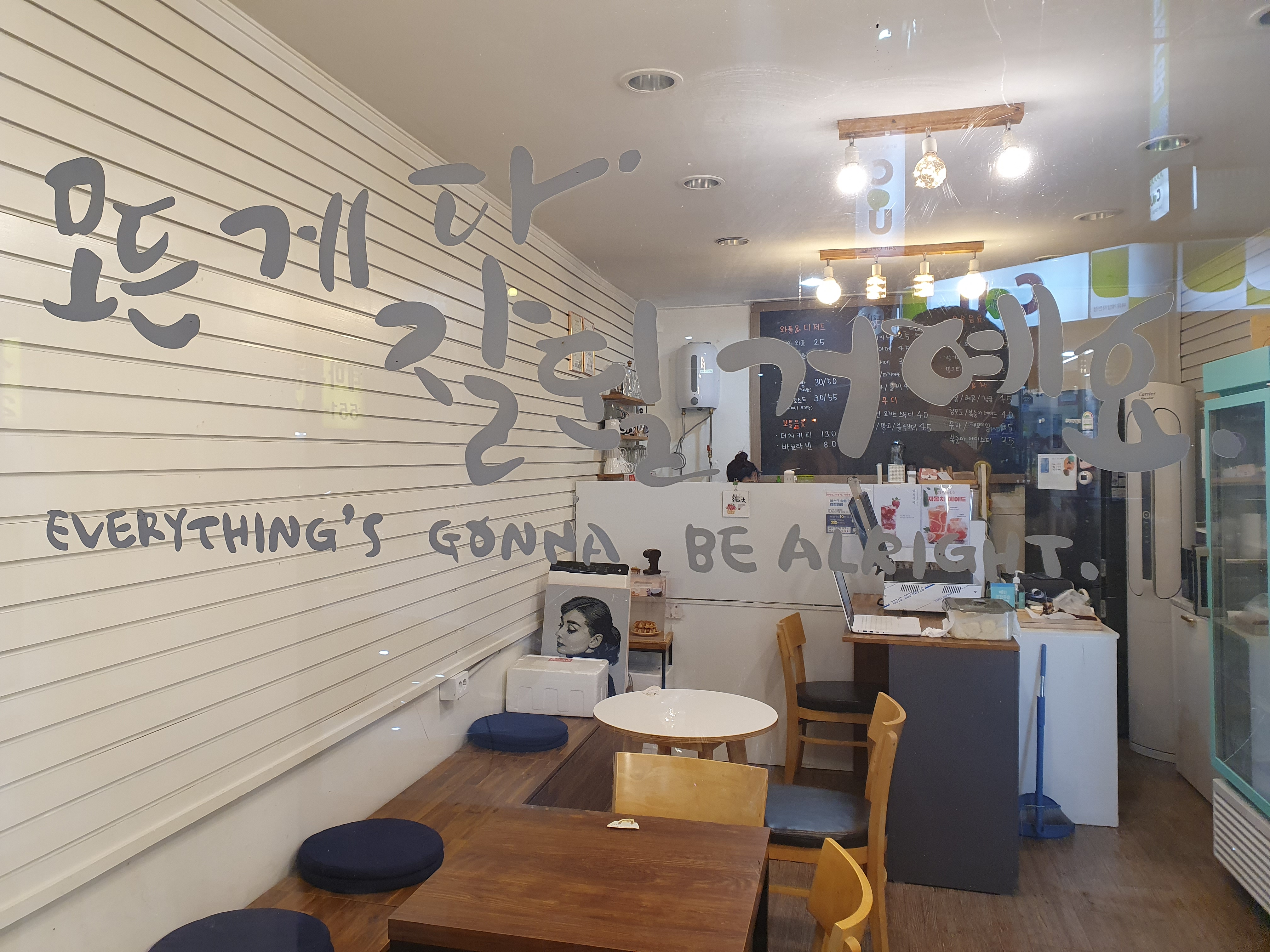카페 유리에 쓰여져 있는 글입니다. 모든게 다 잘 될거예요. 행복한 하루 되세요!