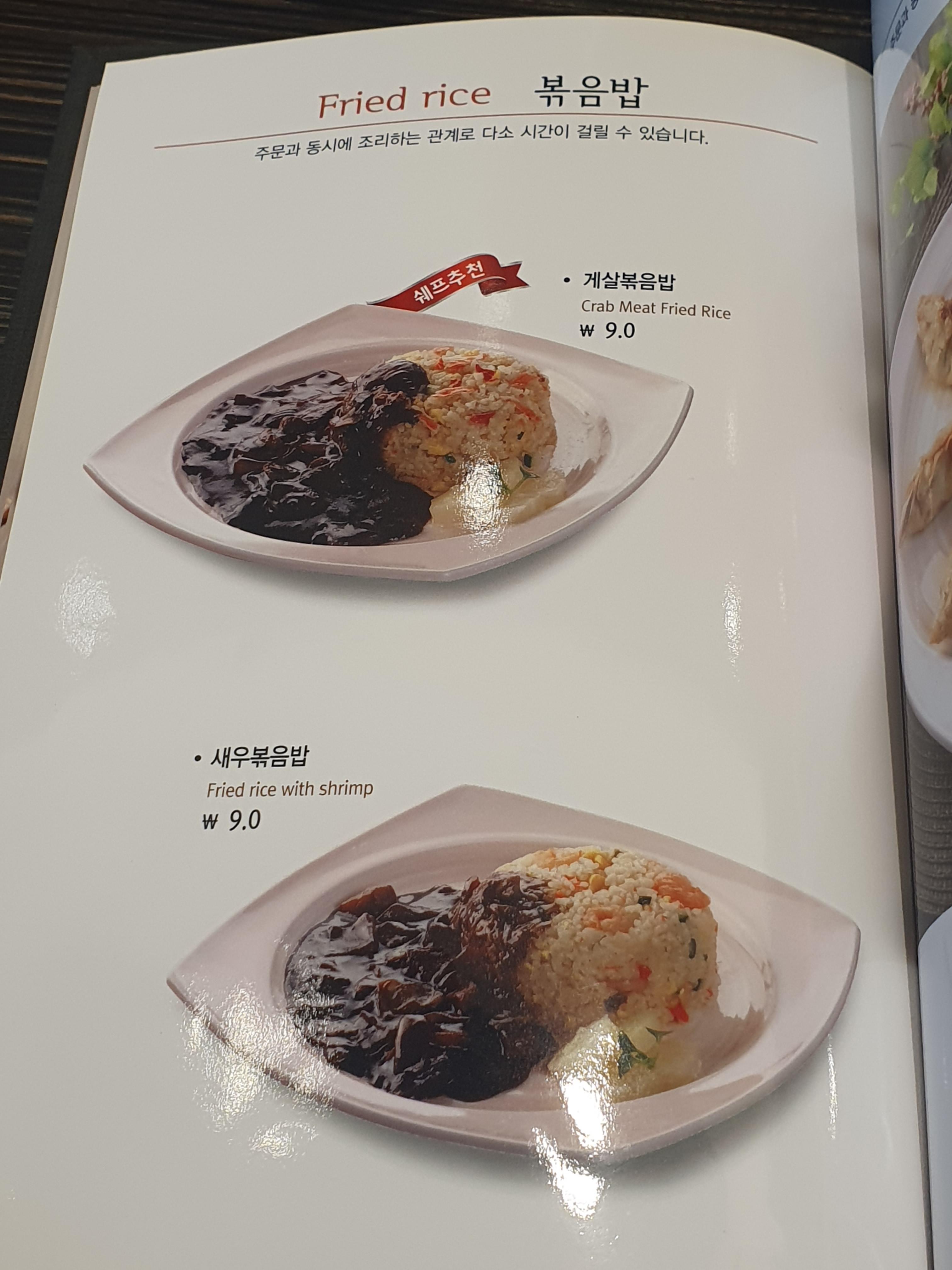 볶음밥 메뉴입니다. 게살볶음밥과 새우볶음밥이 있습니다.