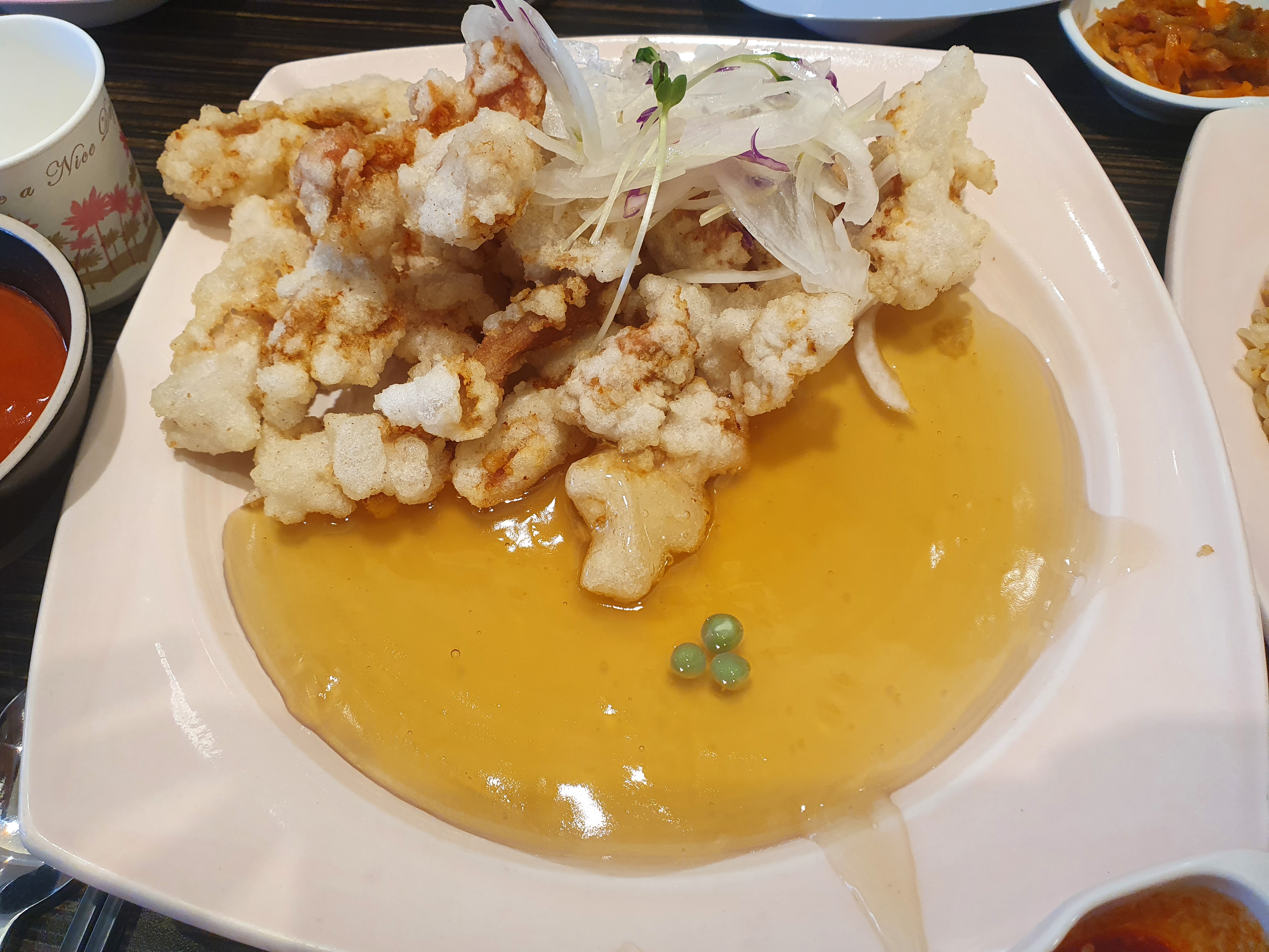 탕수육도 시켜보았습니다. 중자로 시켰는데, 양이 충분히 많은거 같습니다. 탕수육 튀김이 부드럽고 쫄깃쫄깃합니다.