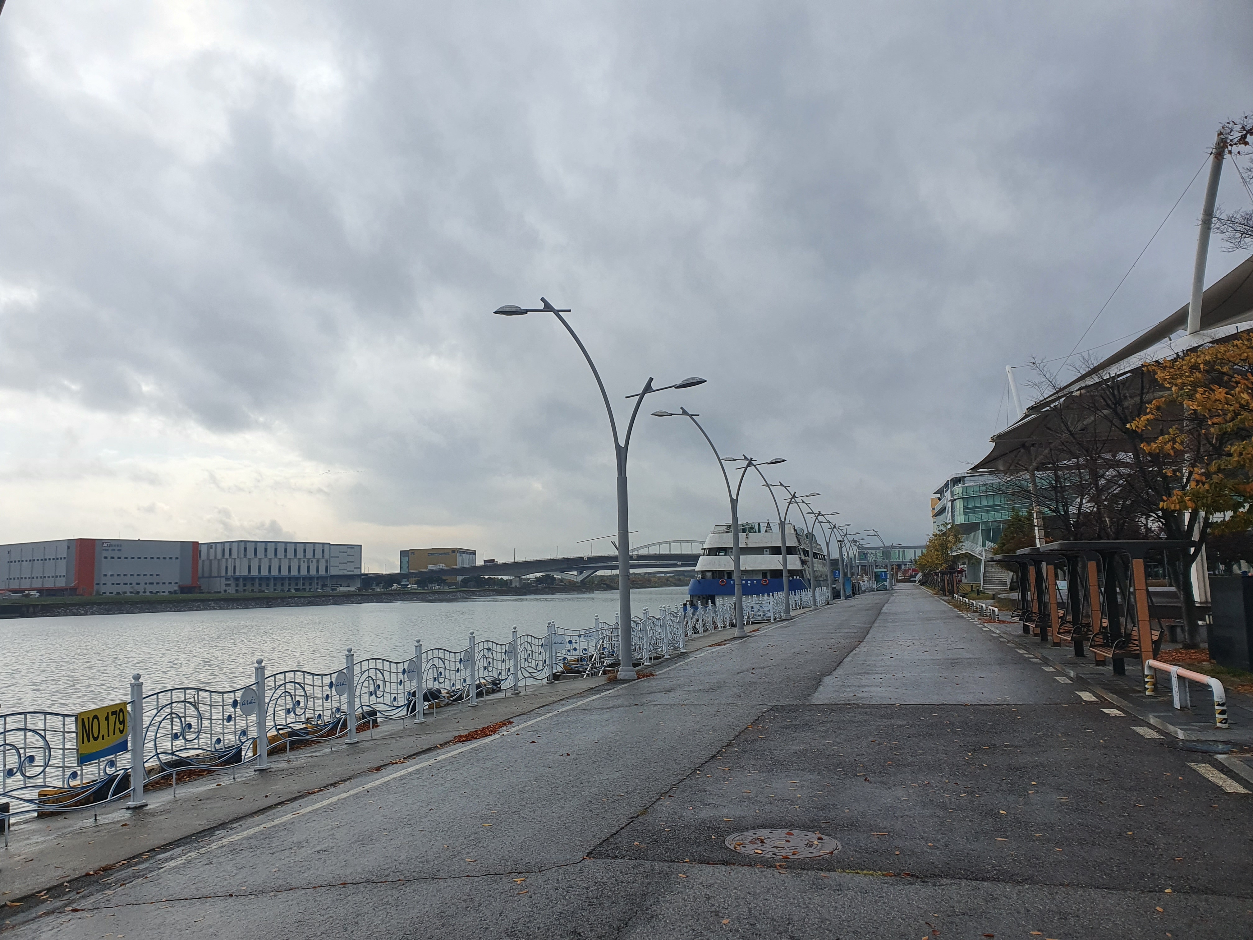 건너편에는 컨테이너부두입니다. 부산항이나 인천항에서 보았던 컨테이너부두가 이렇게 바로 한강옆에도 있다는 사실이 신기합니다. 이곳까지 컨테이너선이 직접 들어오면 서울까지 컨테이너를 운송하는게 확실히 가까울거 같습니다. 주변에 큰 물류센터들이 많은 이유가 있었네요.