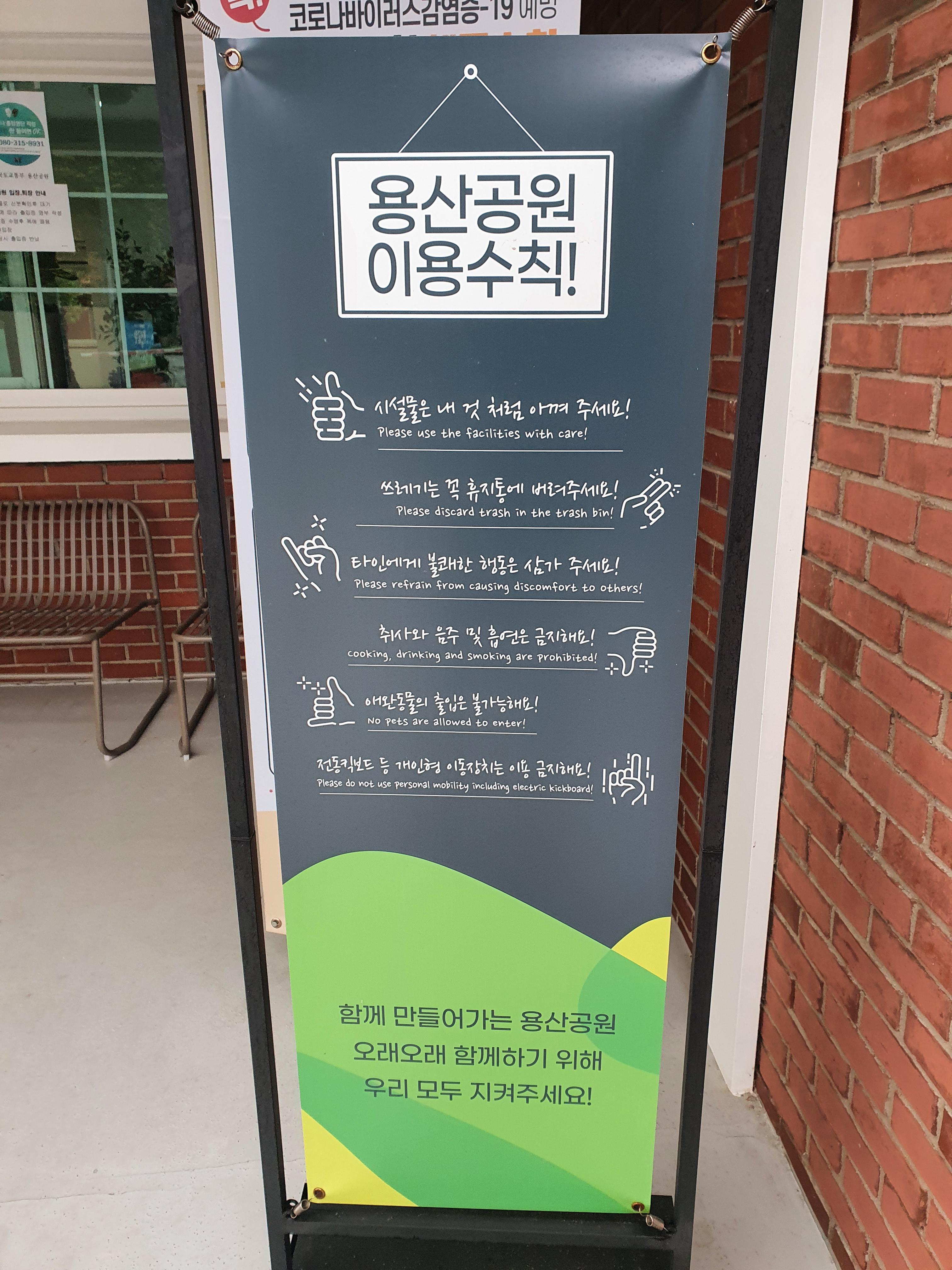 용산공원이 영어로 적혀있습니다. 예쁜 의자들도 있어서 앉아서 쉬고 싶었지만 비가 많이 내려서 구경만 했습니다.