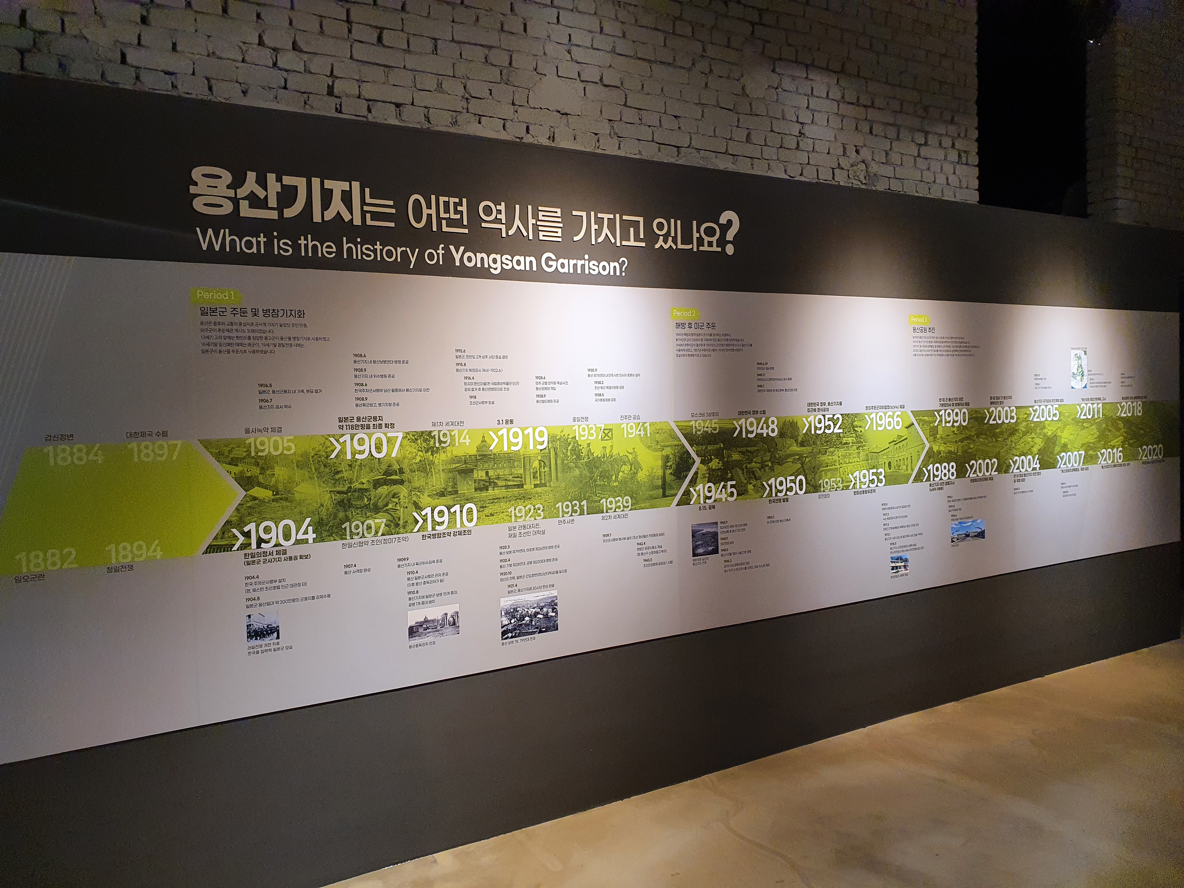 용산기지의 역사입니다. 일본군이 이곳을 군사기지로 활용했다는 사실을 이번에 처음 알게 되었습니다.