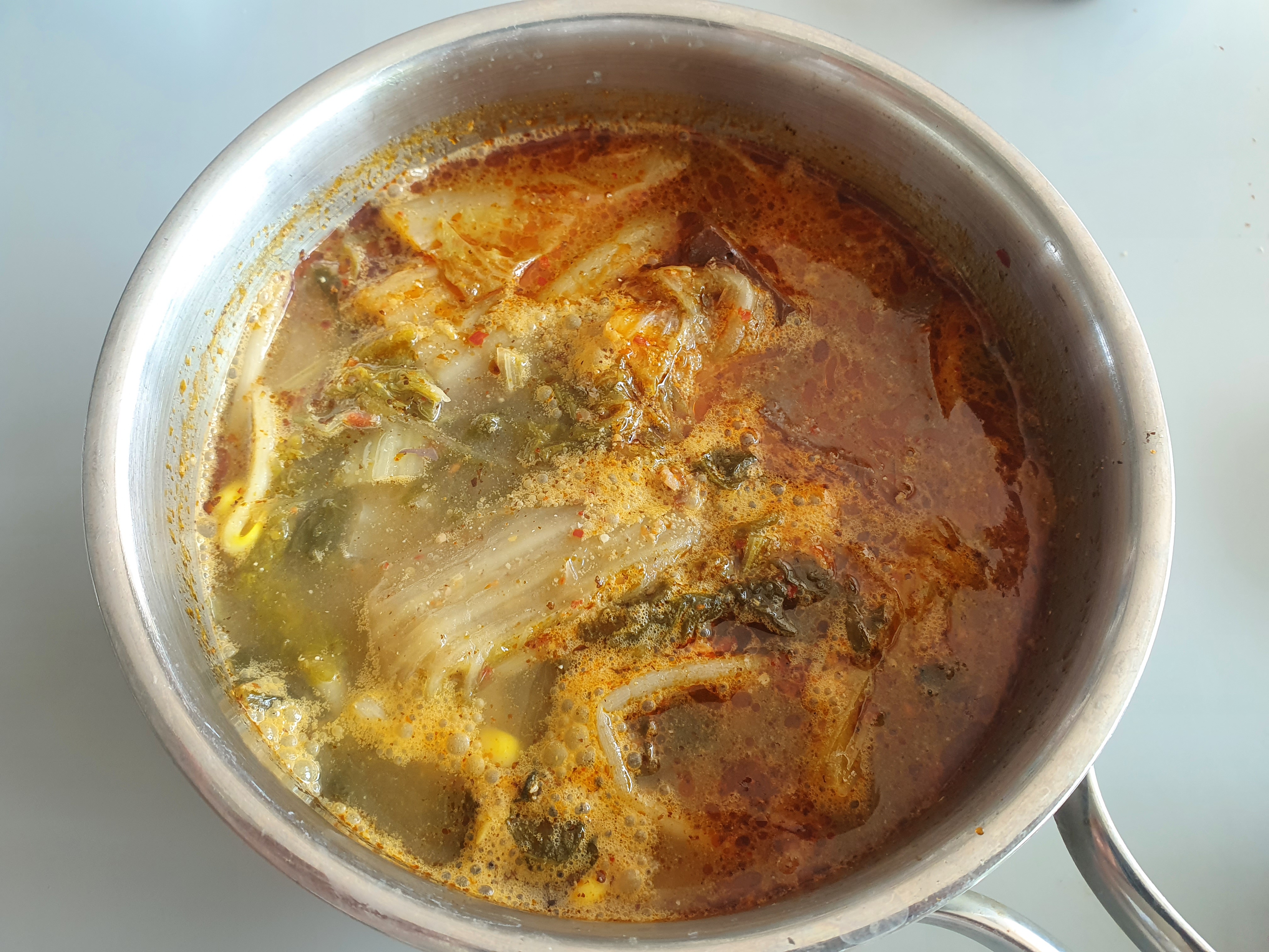 차가운 상태로 포장을 해와서 이렇게 냄비에다가 다시 끓였습니다.