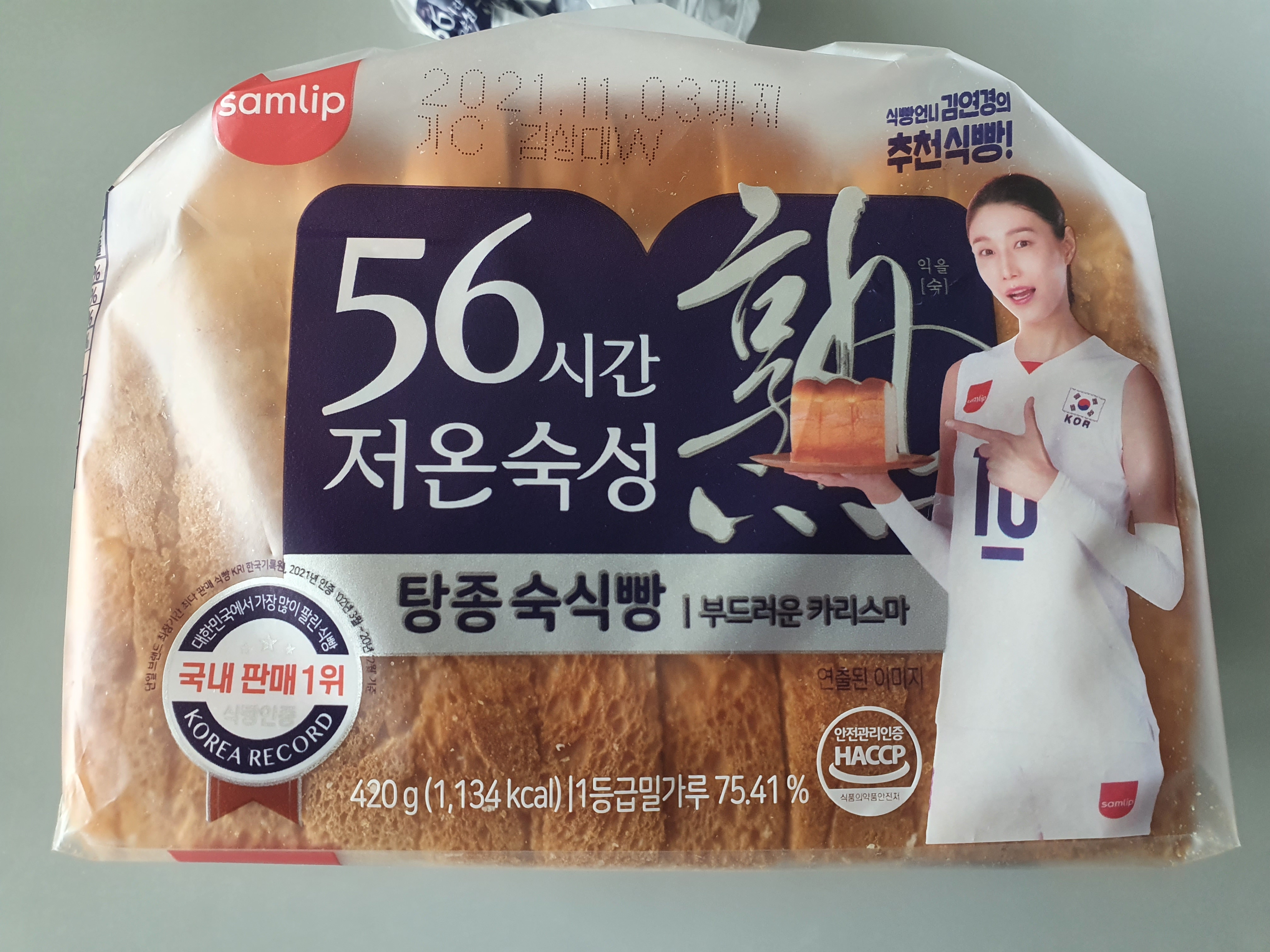 안녕하세요! 지난번에 이어서 삼립에서 나온 56시간 저온숙성 탕종숙식빵을 소개합니다. 여기에도 어김없이 식빵언니 김연경선수가 광고를 해주고 있네요!