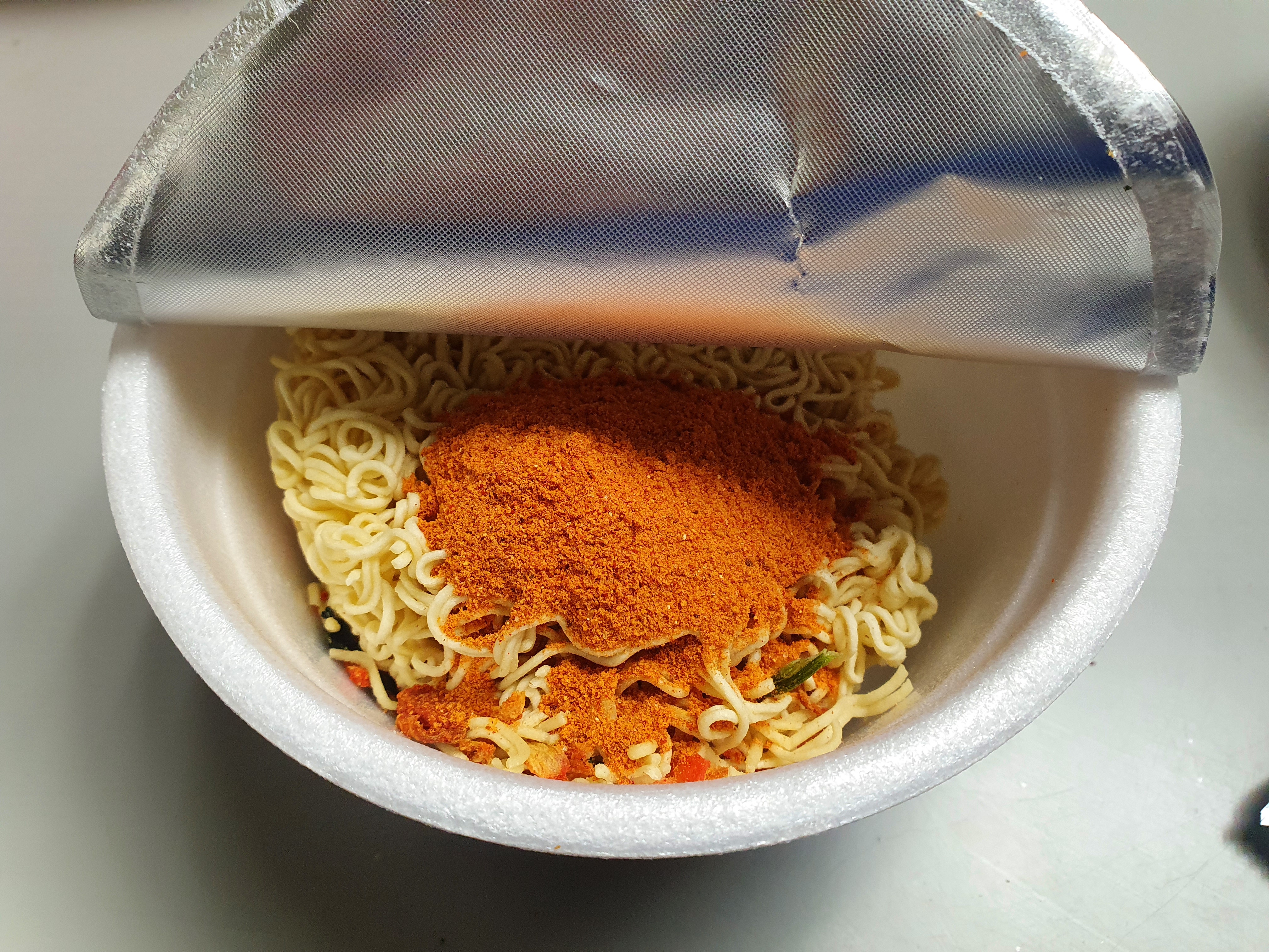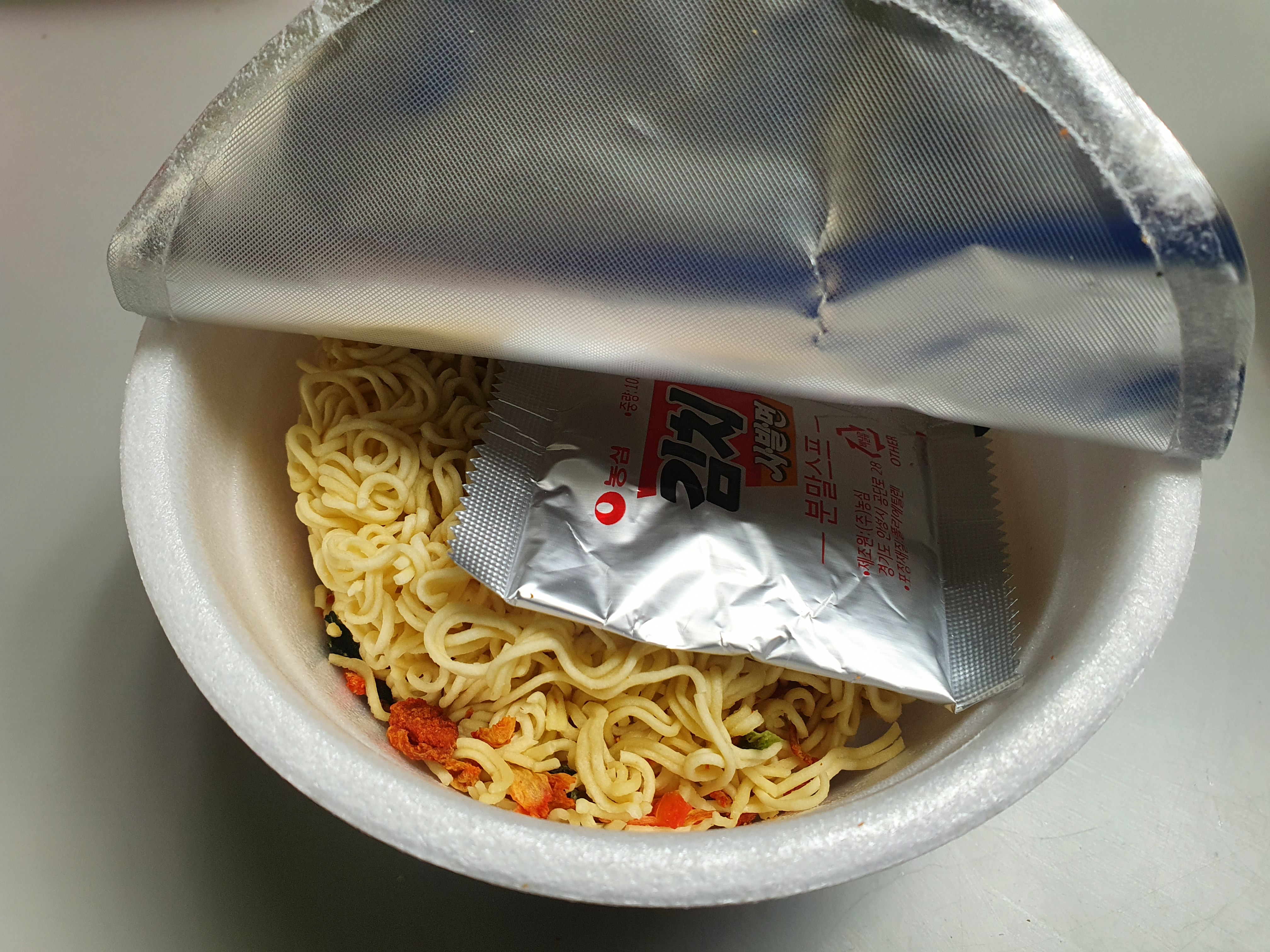 스프를 넣고 뜨거운 물을 부으면 조리 끝!
