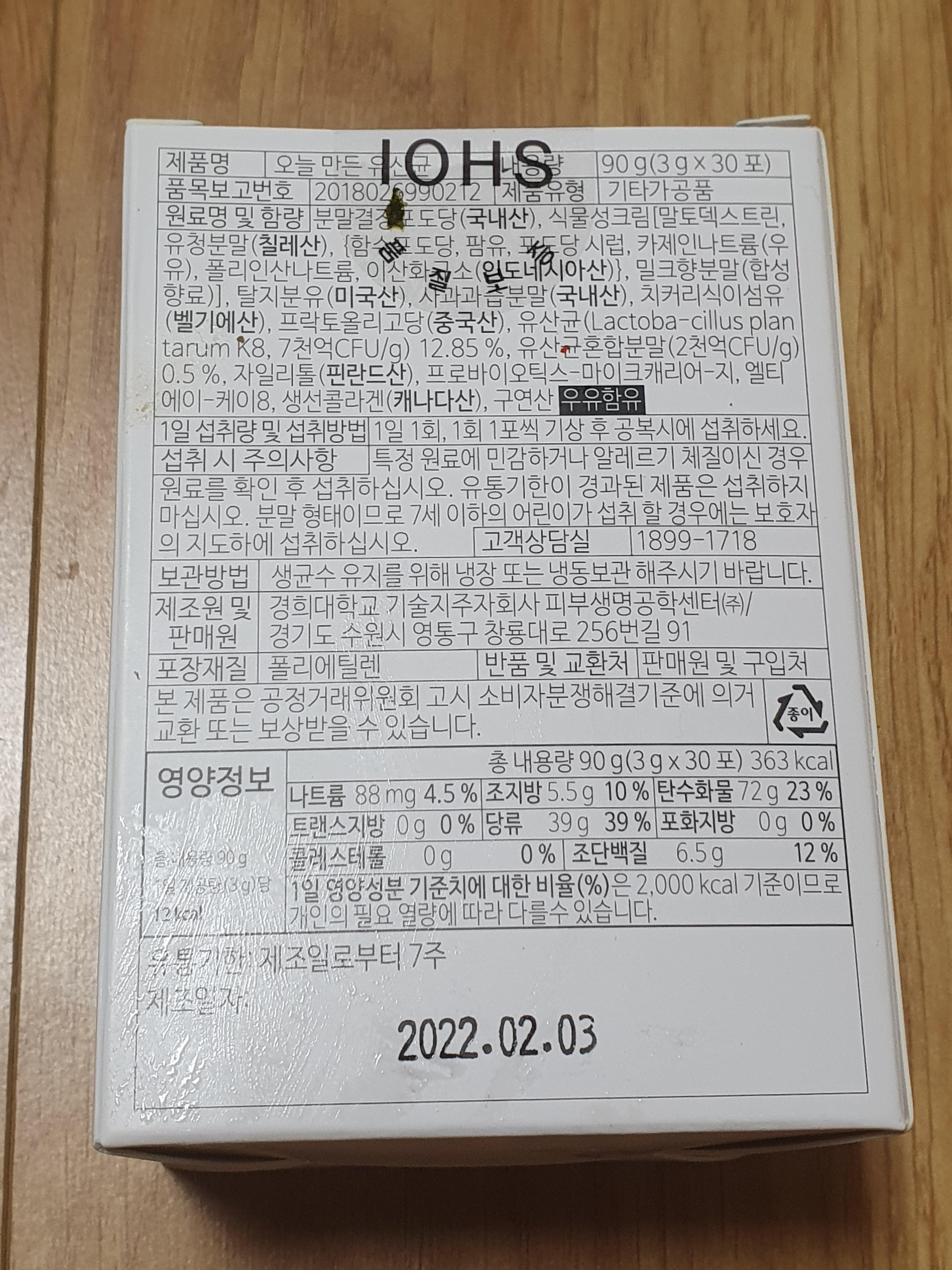 오늘은 IOHS에서 나온 오늘 만든 유산균을 소개해보고자 합니다.
