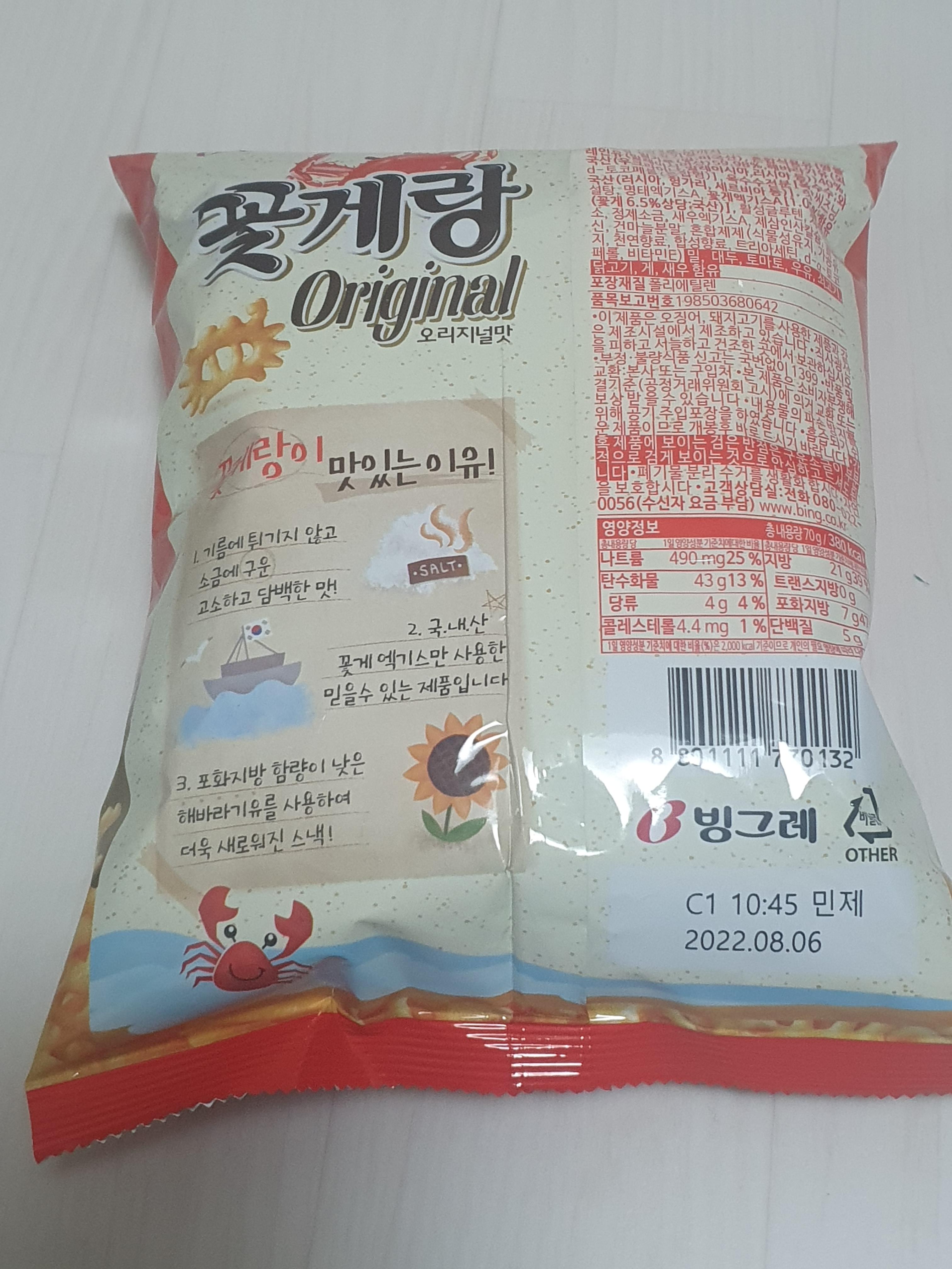 꽃게랑 오리지널맛이라고 적혀 있는걸 보니 꽃게랑 다른 맛도 있나봅니다.