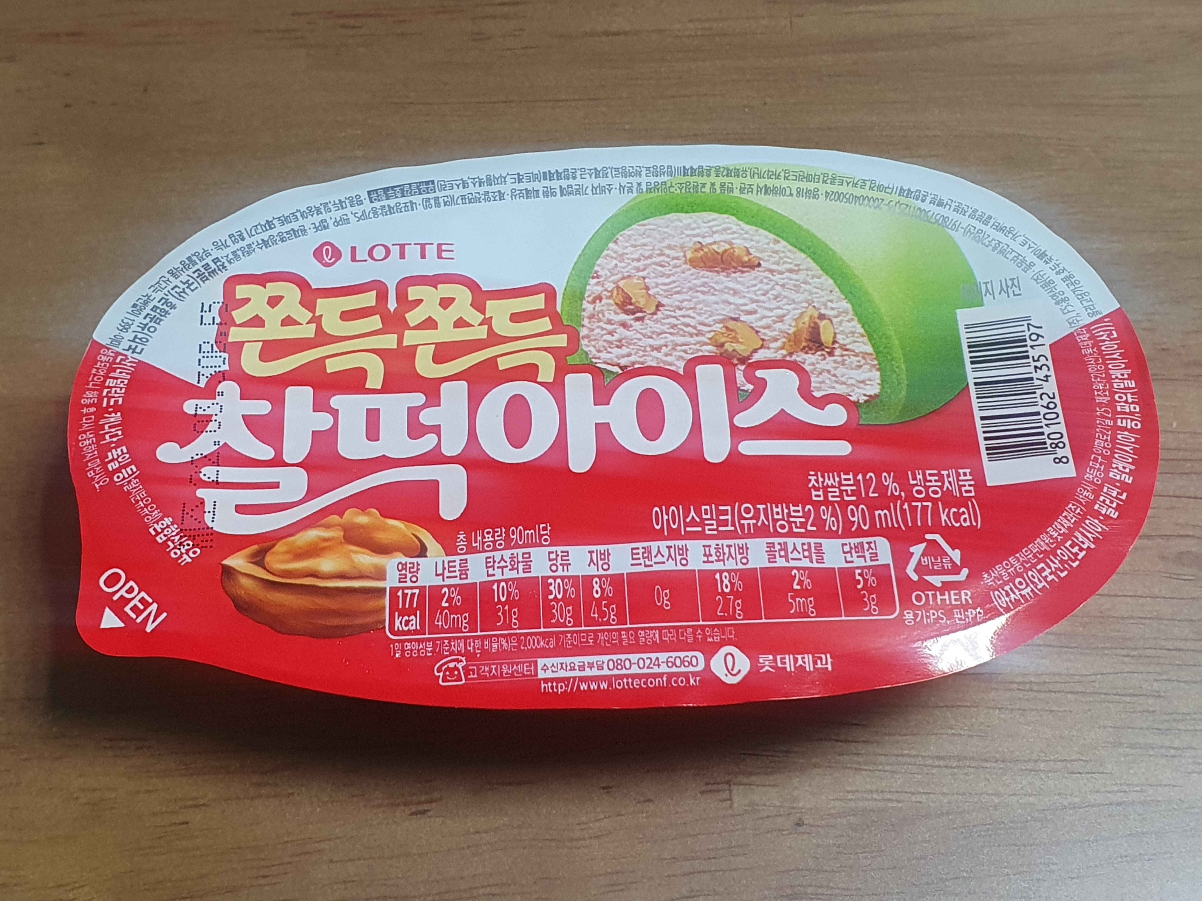 지난번 찰옥수수에 이어서 이번에는 롯데에서 나온 쫀득쫀득 찰떡아이스입니다.