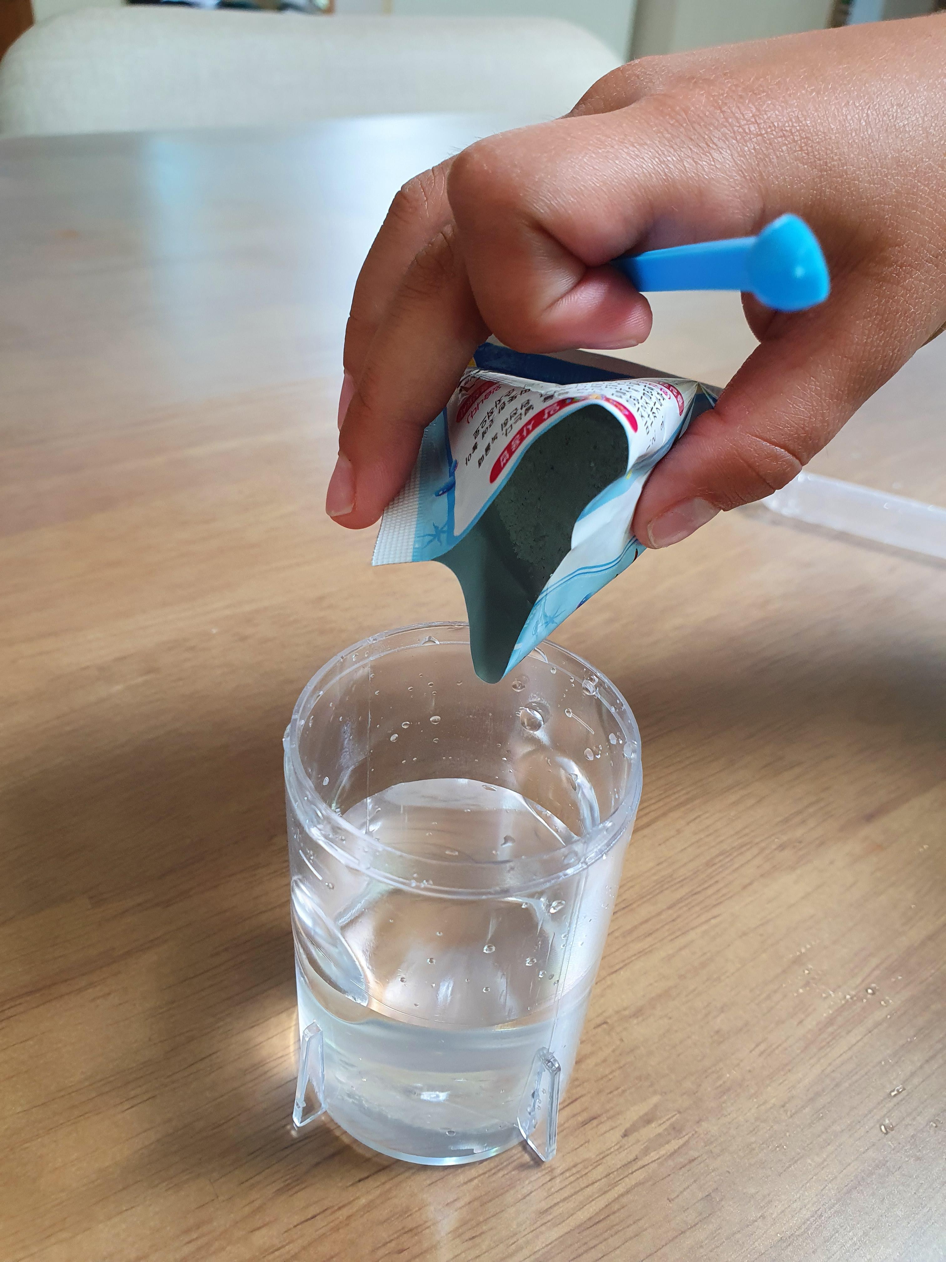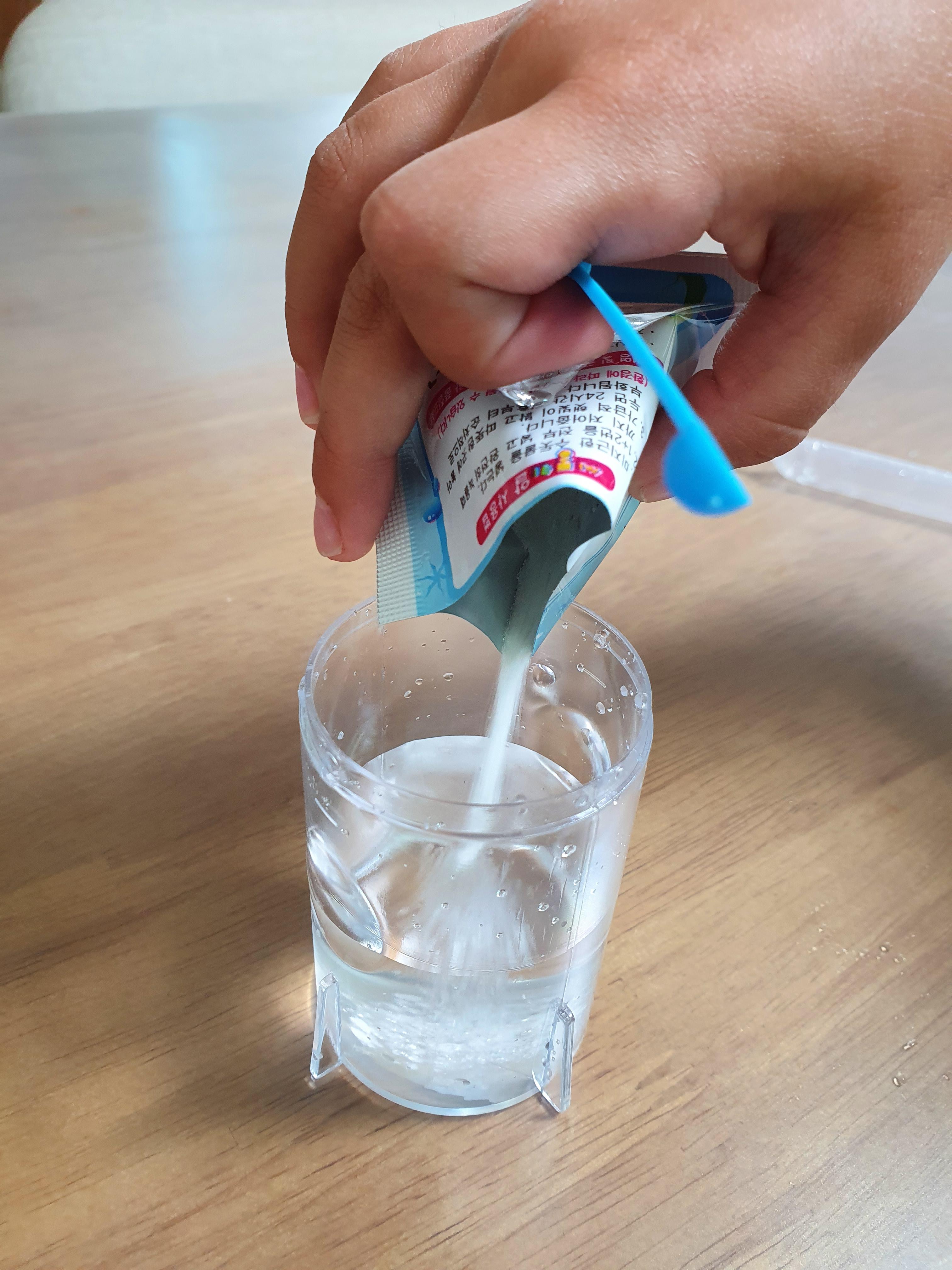 어항에 물을 넣고서 가루를 부으면 됩니다.