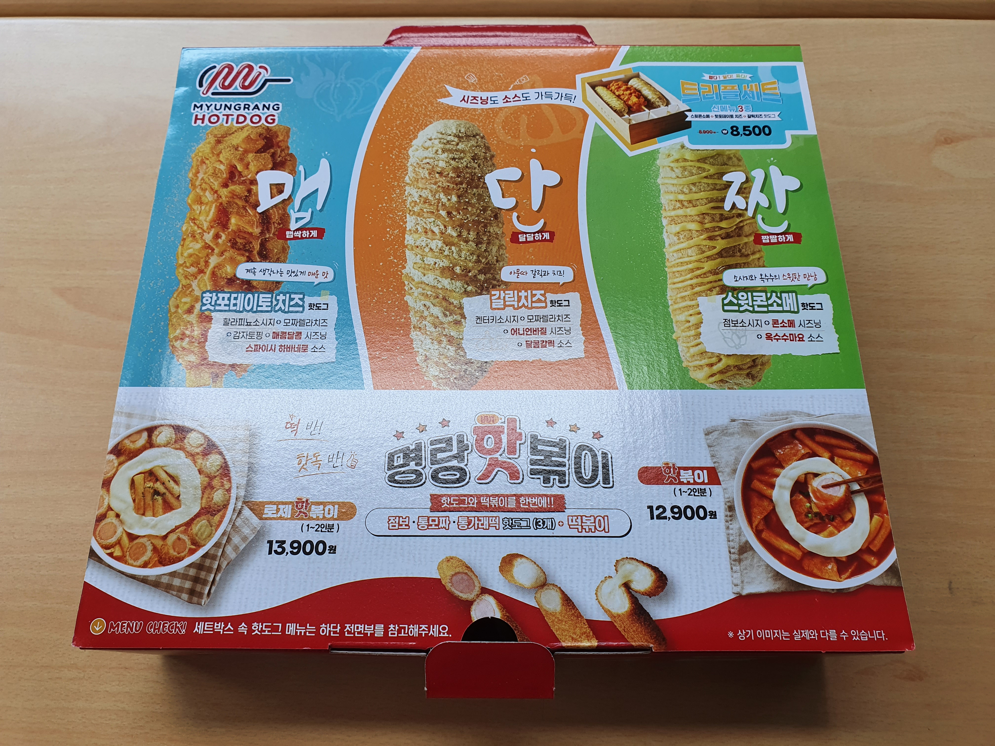 핫포테이토치즈 핫도그, 갈릭치즈 핫도그, 스윗콘소메 핫도그, 명랑핫볶이까지 정말 다양합니다.
