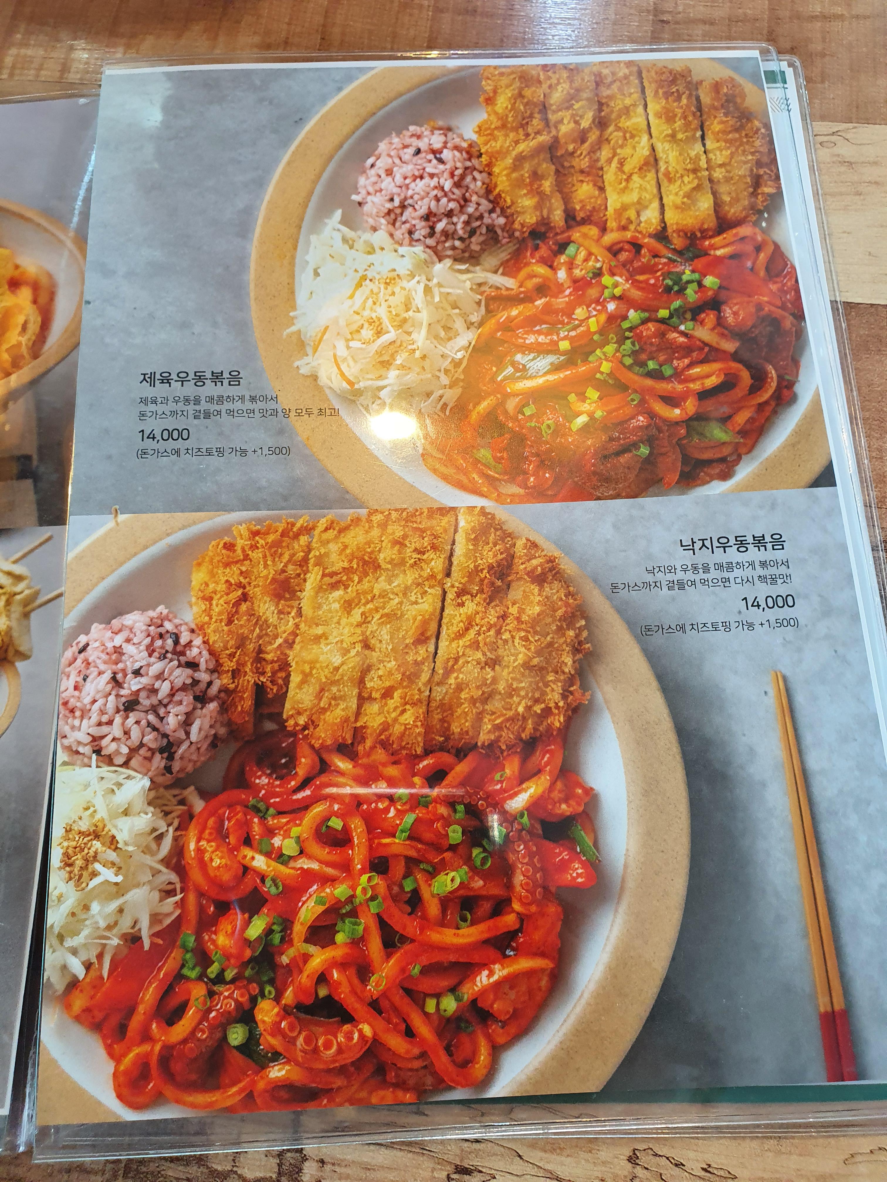제육우동볶음, 낙지우동볶음까지 볶음우동도 있습니다.