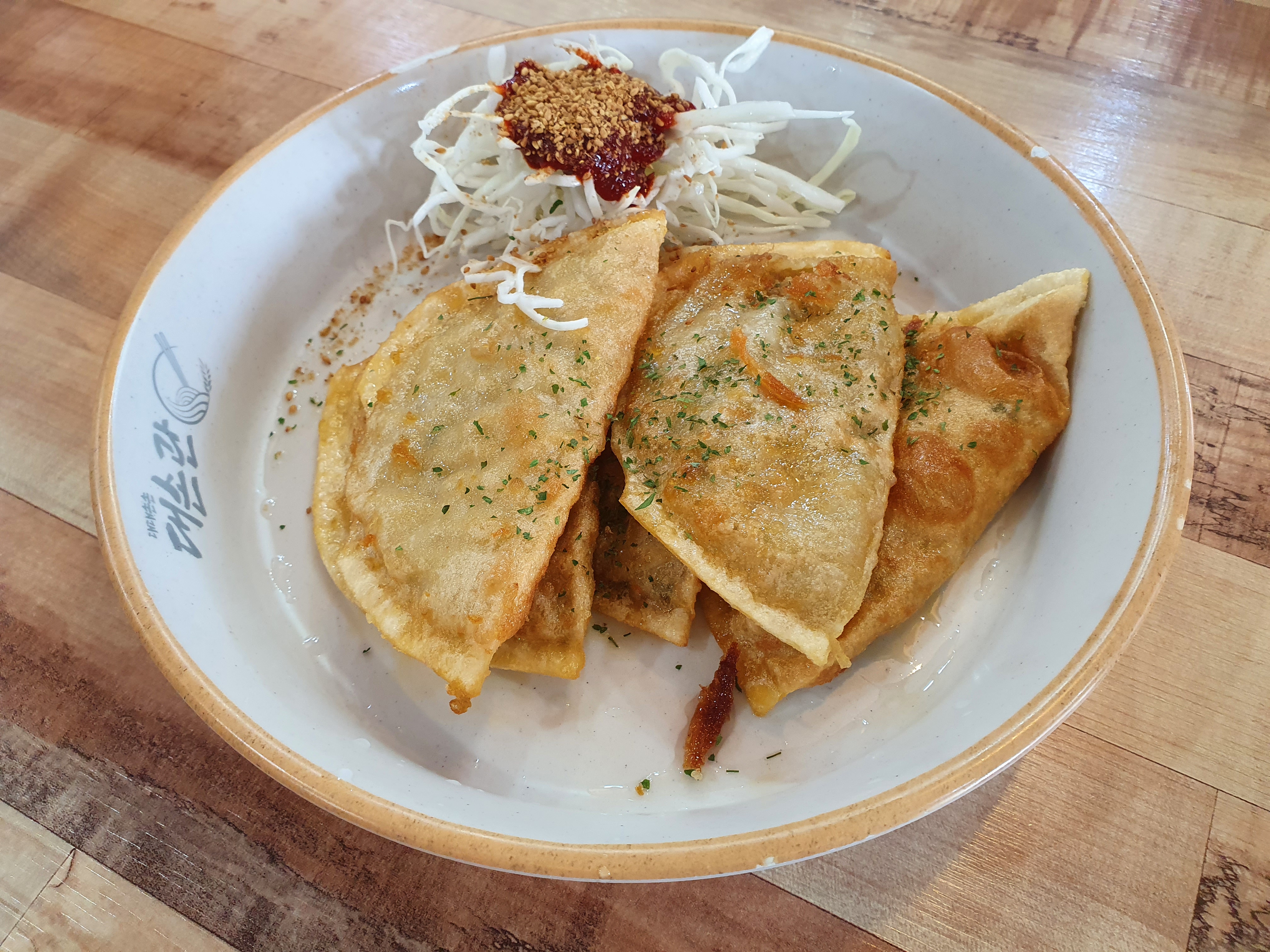 고민끝에 다양한 음식들을 시켜보았습니다. 납짝만두입니다.