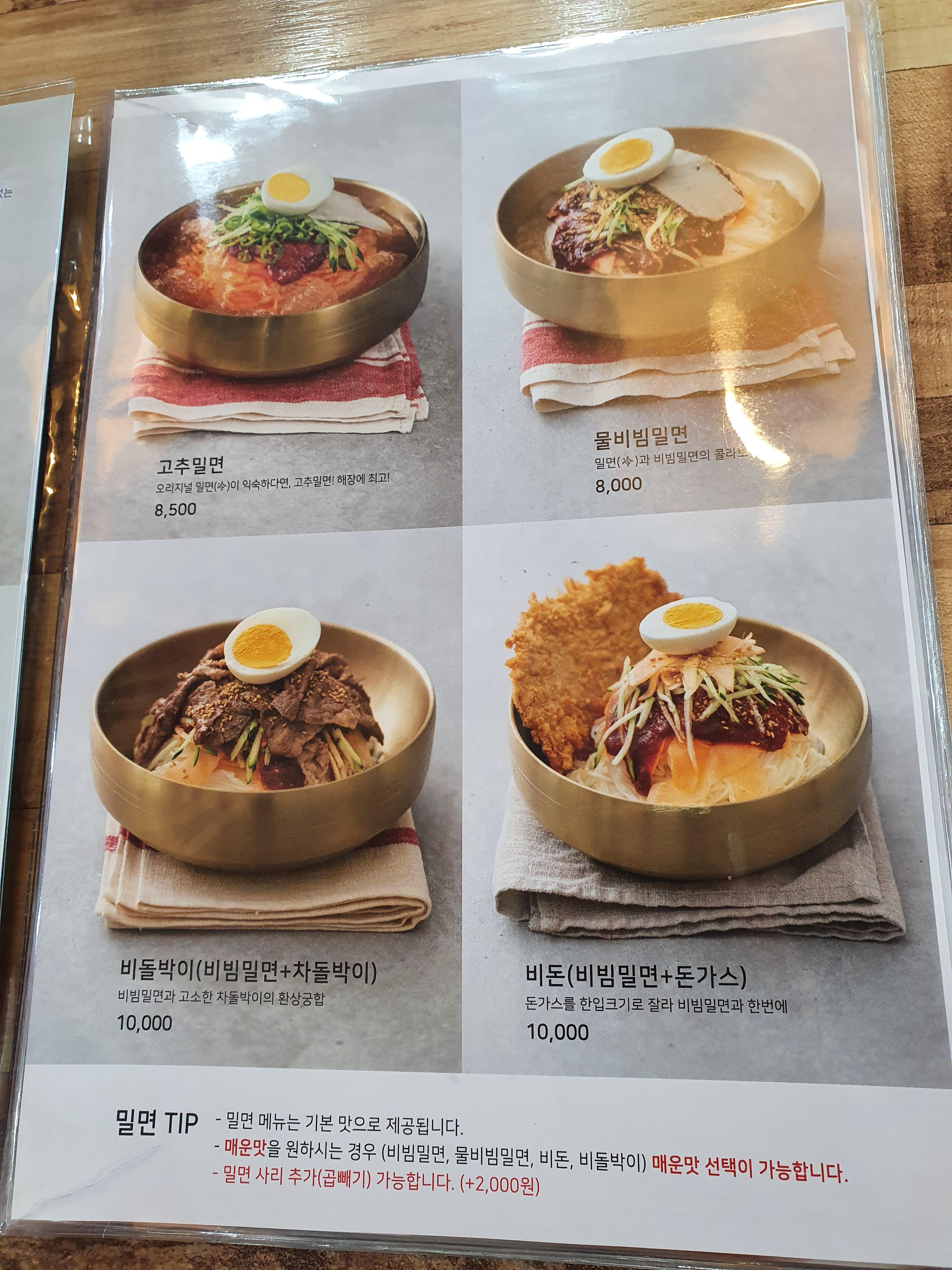밀면에 차돌박이와 돈가스도 함께 즐길 수 있네요