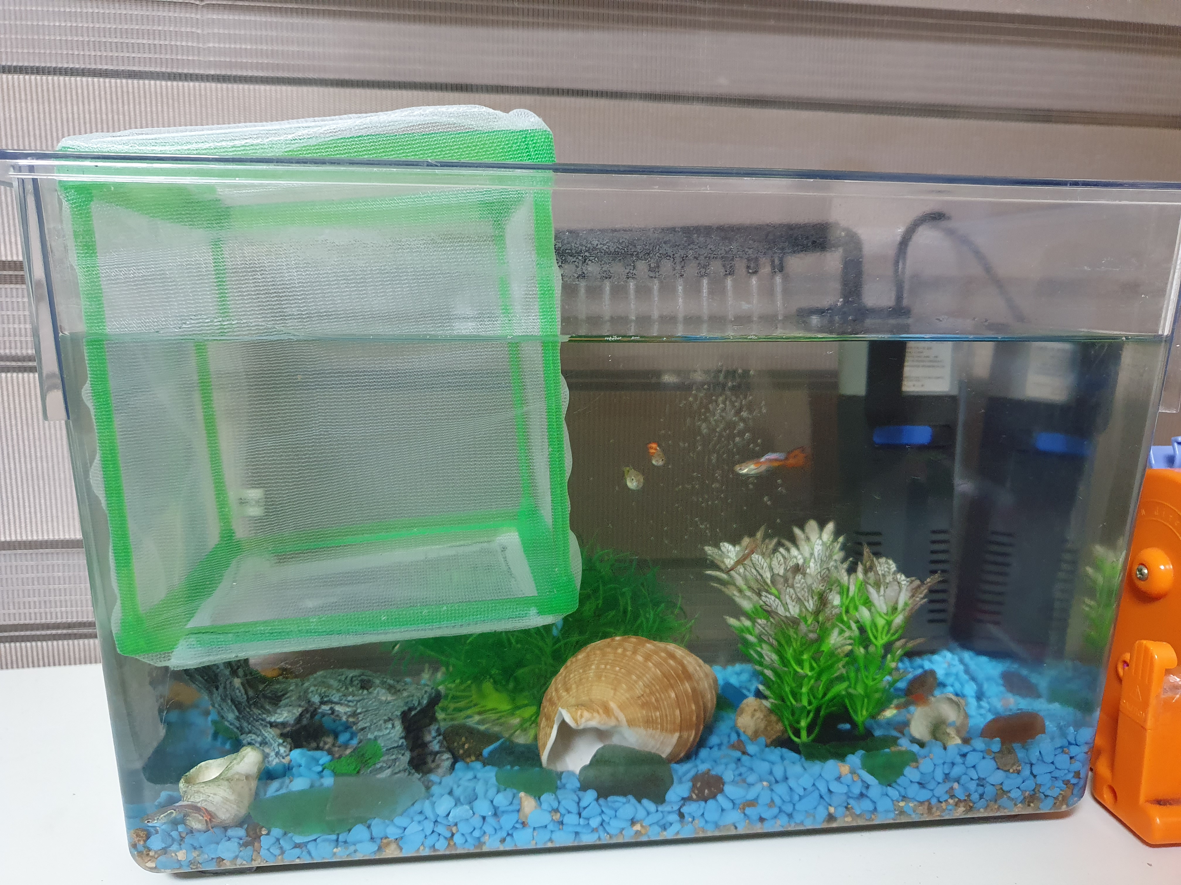 집에서 키우고 있는 구피 한마리의 배가 점점 커지고 있어서 다이소에서 어항용 치어부화통을 구입했습니다.