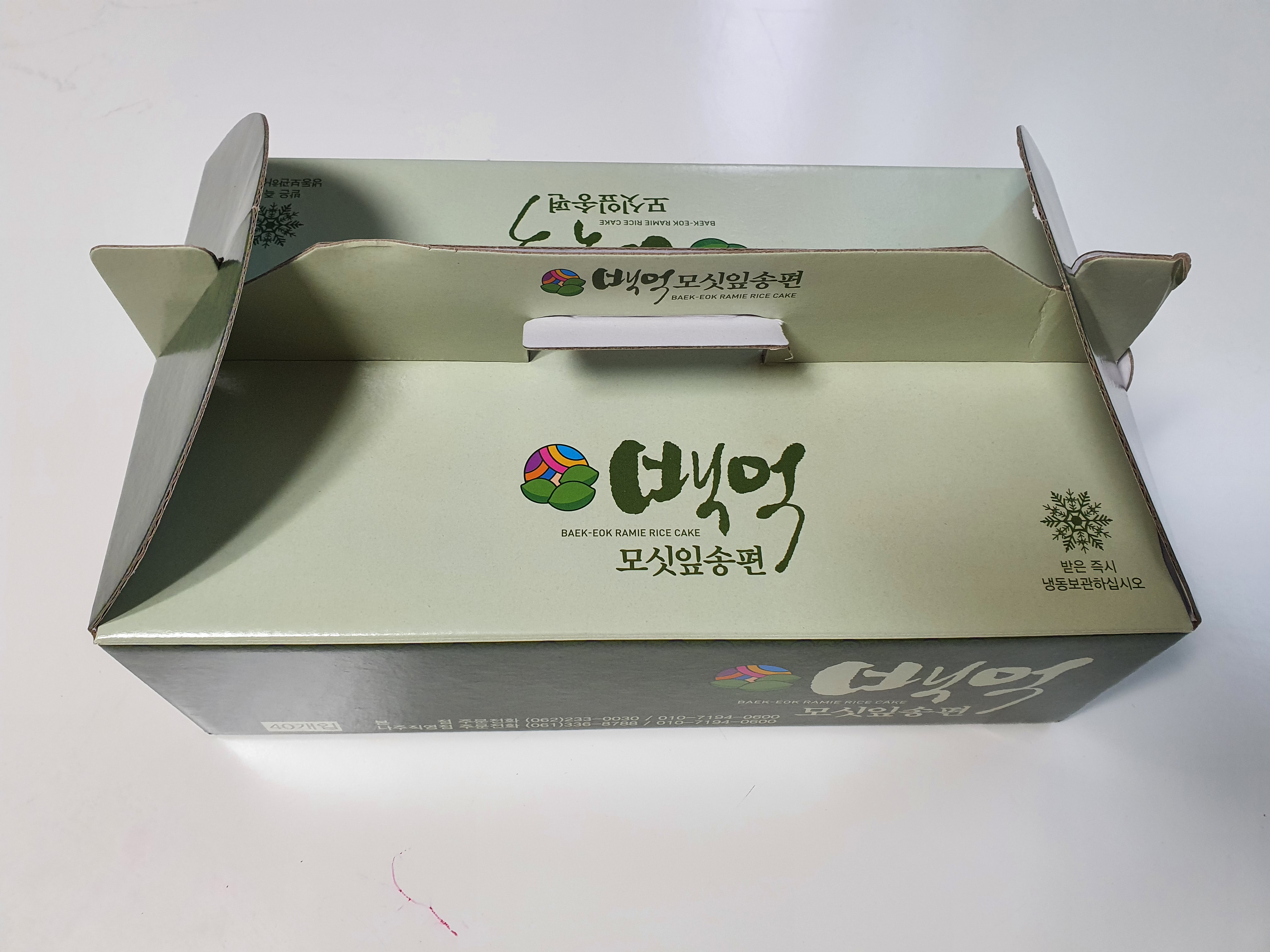 박스 안에는 이렇게 여러가지 모싯잎 송편들이 들어있습니다.
