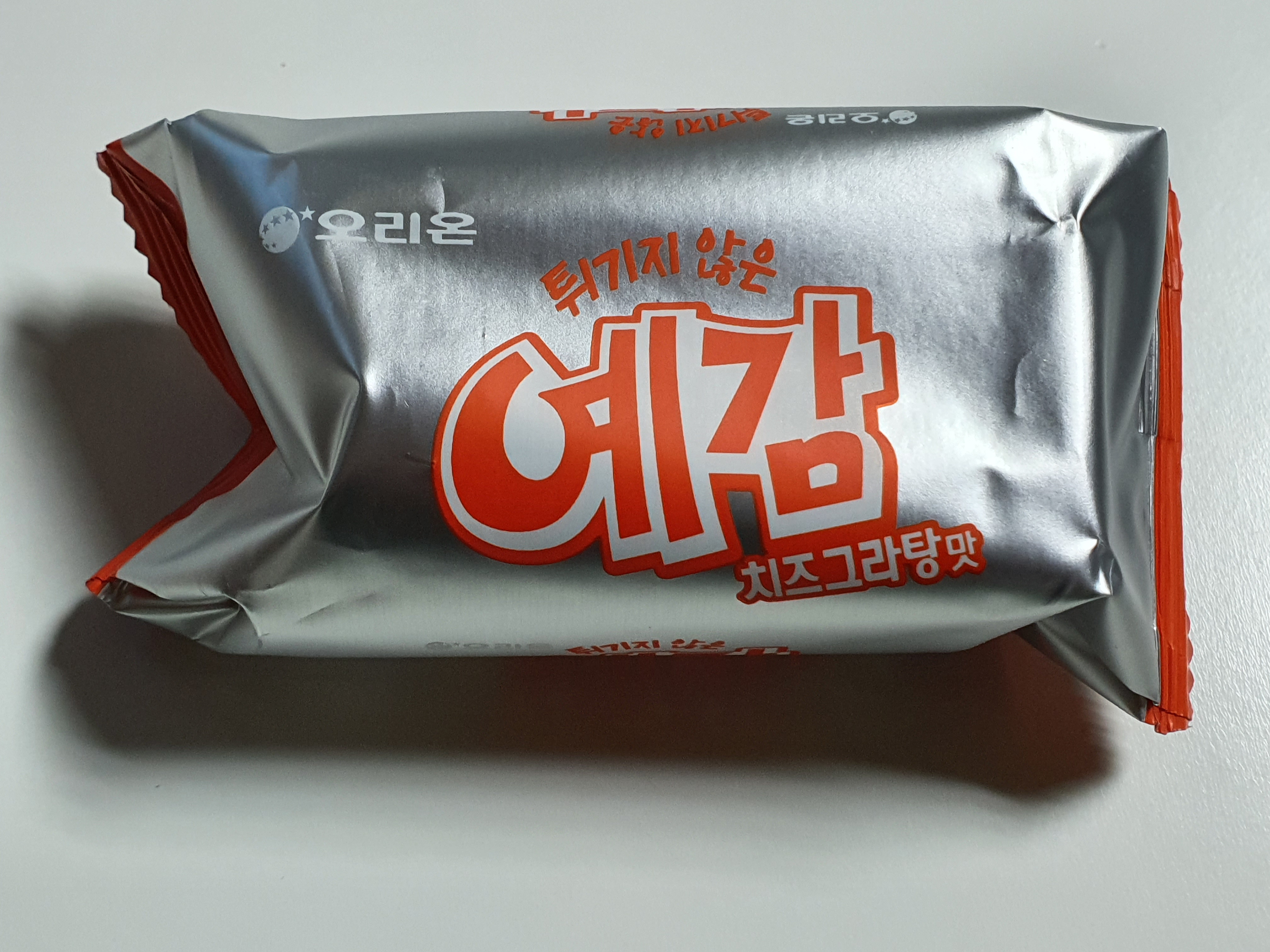 오리온에서 나온 튀기지 않은 예감 치즈그랑탕맛입니다.