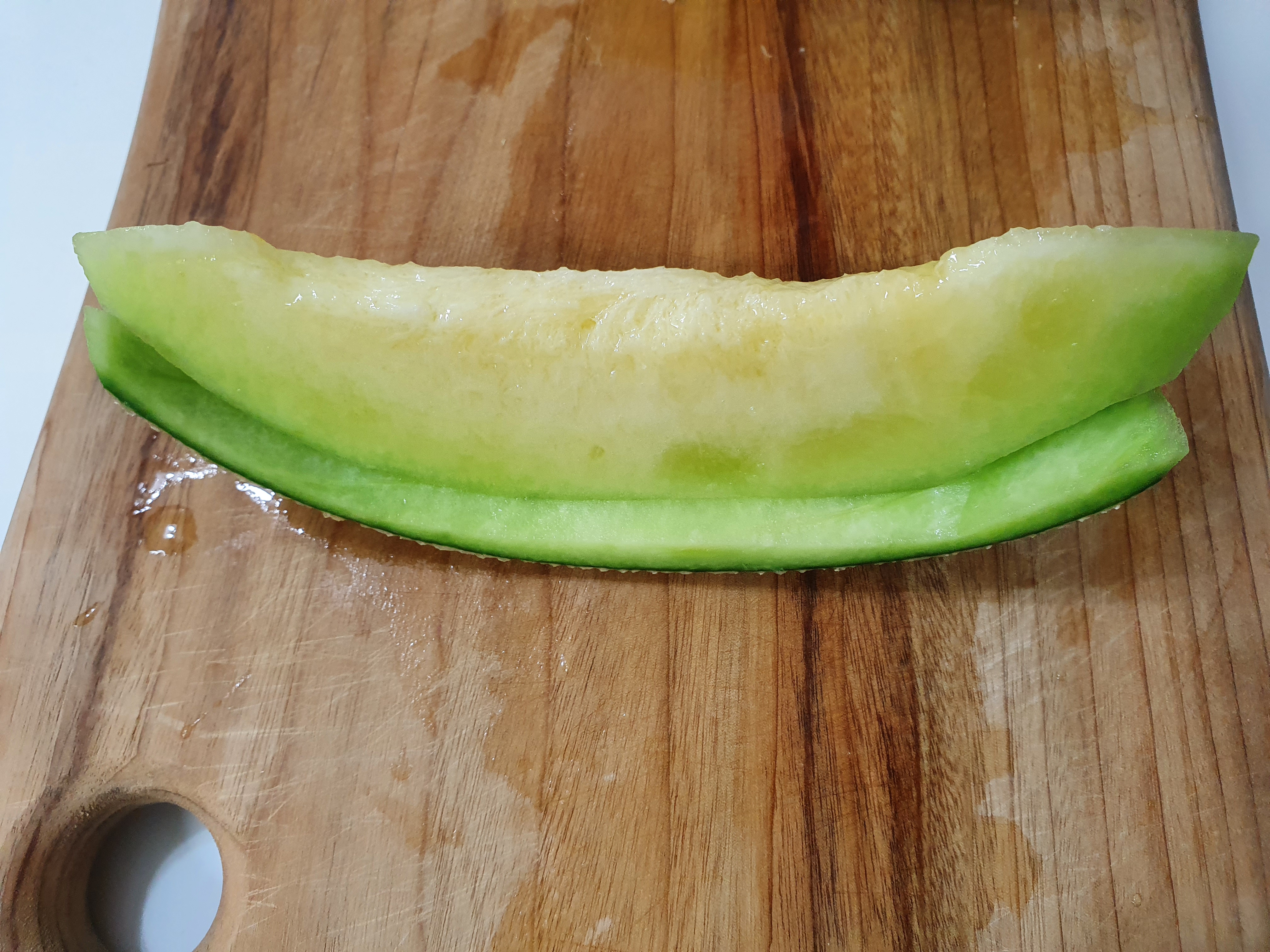 5. 껍질과 분리된 멜론을 입에 먹기 좋은 크기로 잘라줍니다.