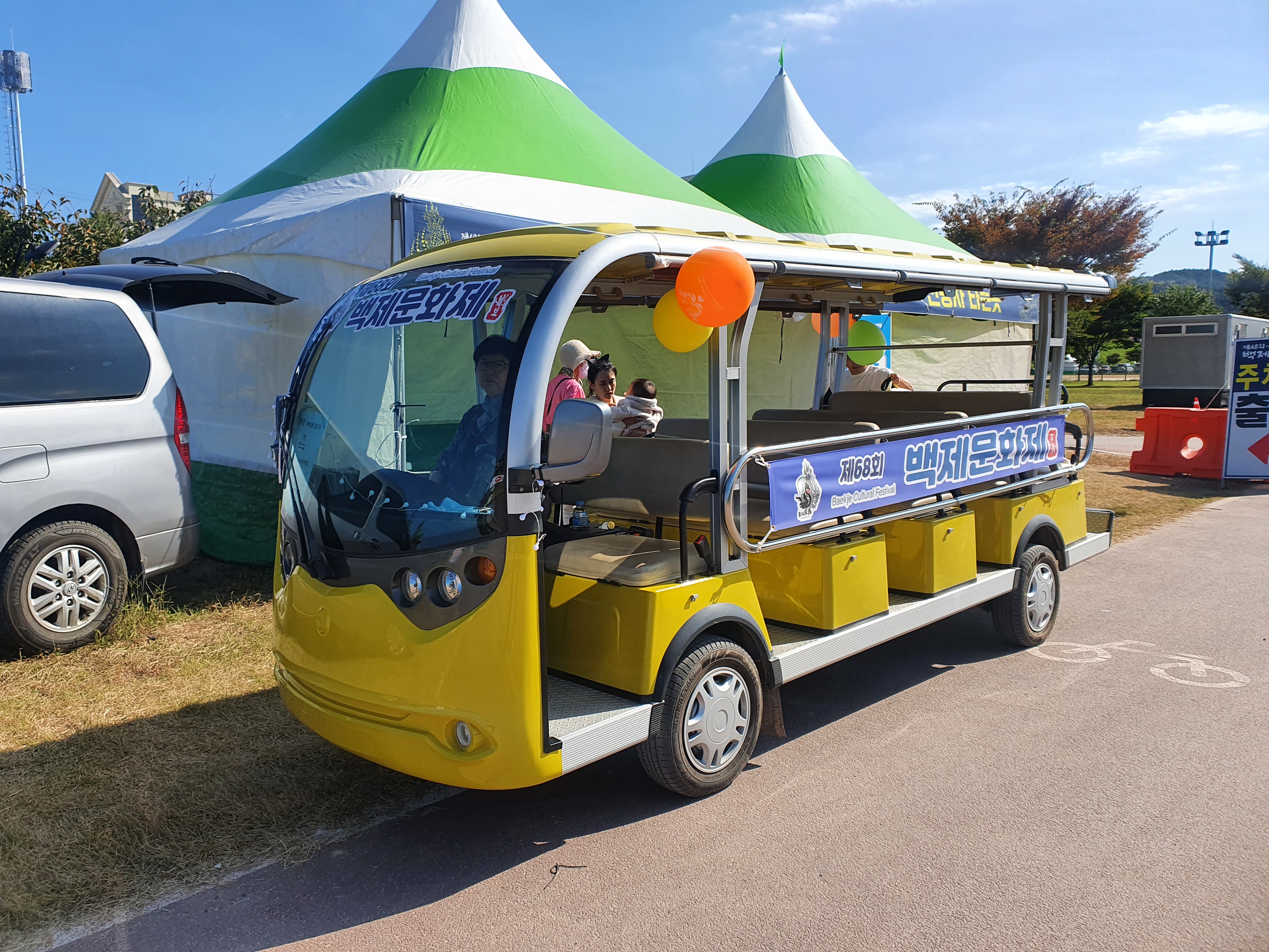 이렇게 노란색 전동차 셔틀버스를 타시면 매표소까지 편하게 이동할 수 있습니다.