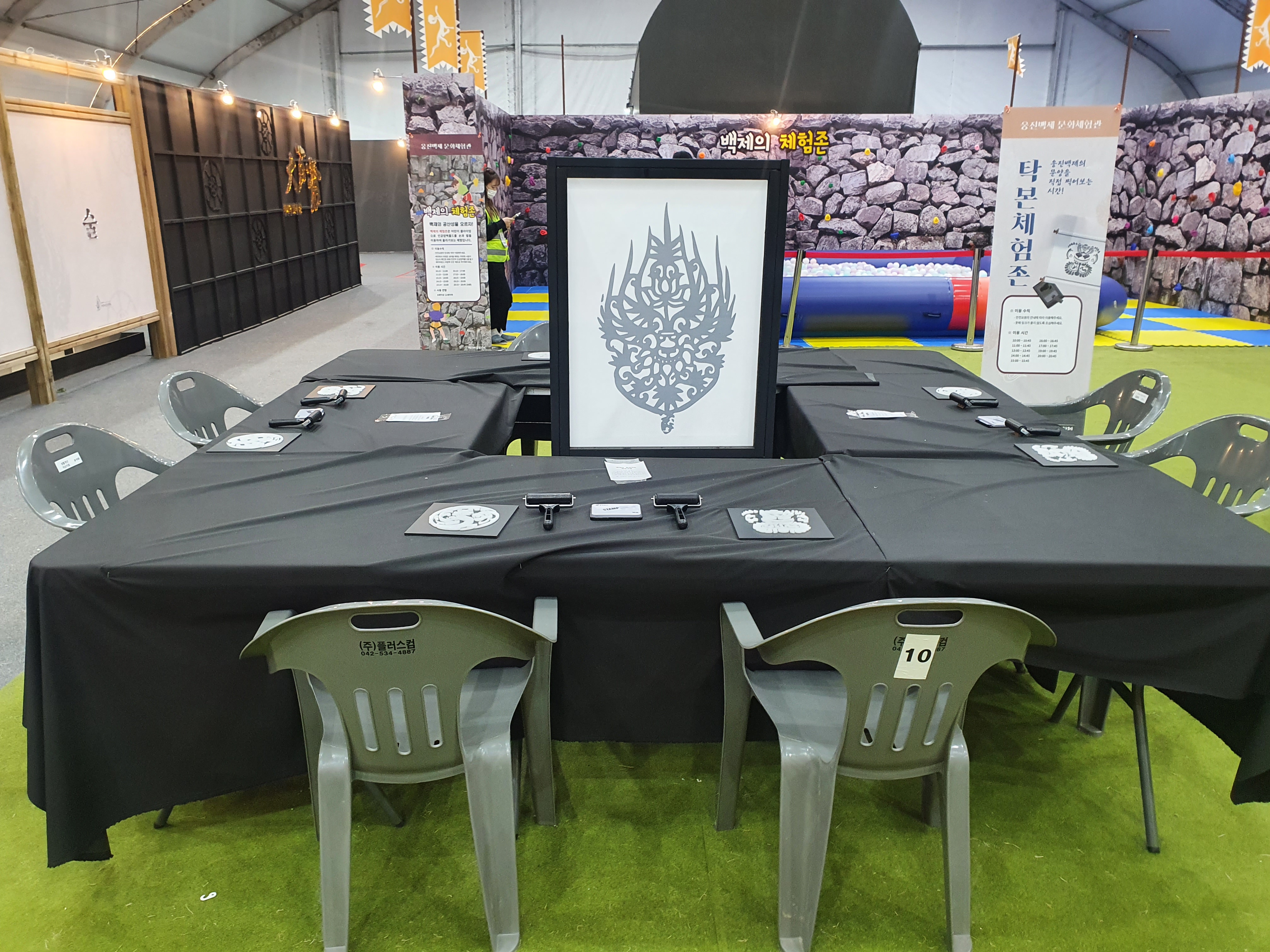 큰 천막에서는 웅진백제 문화체험관을 운영하고 있습니다. 입장료는 무료입니다.