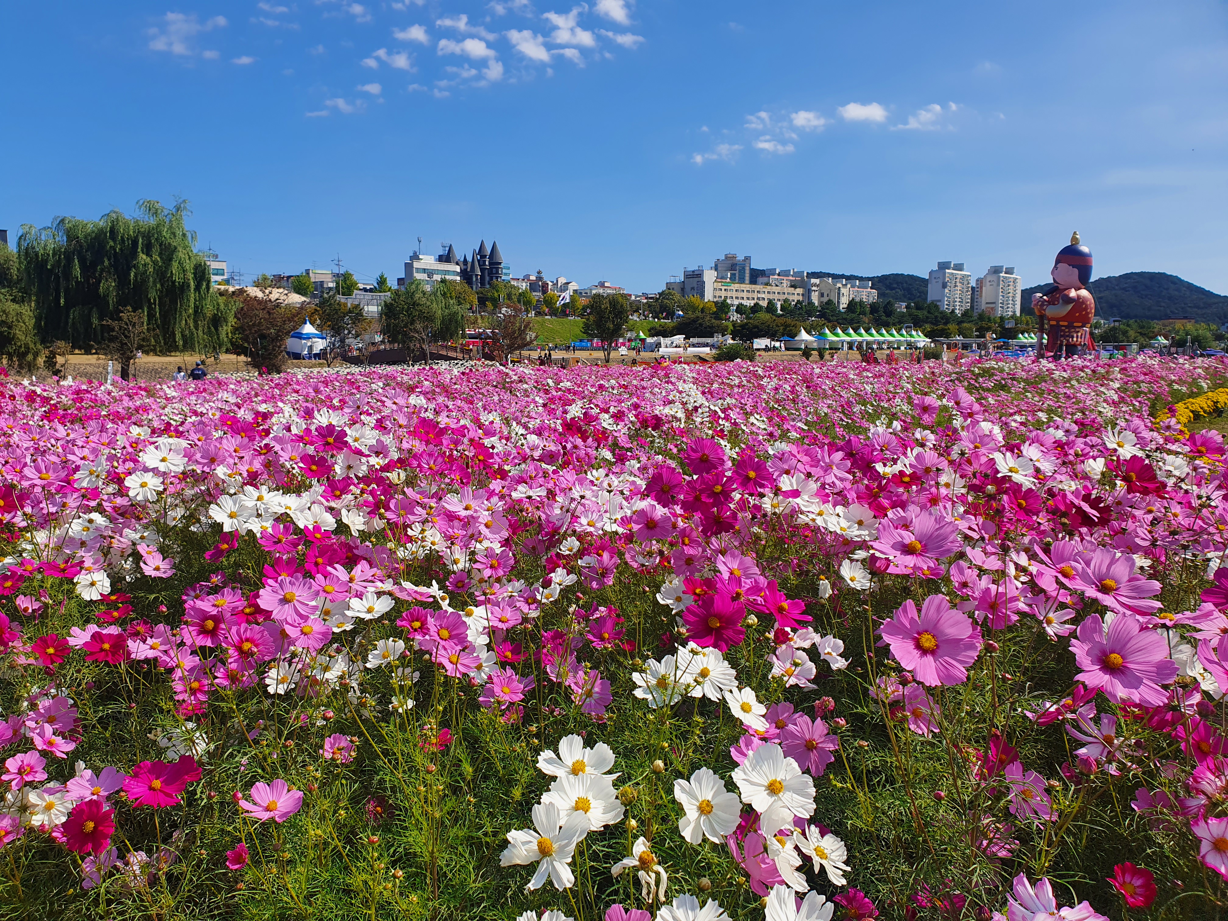 미르섬에 코스모스가 이쁘게 피었습니다.