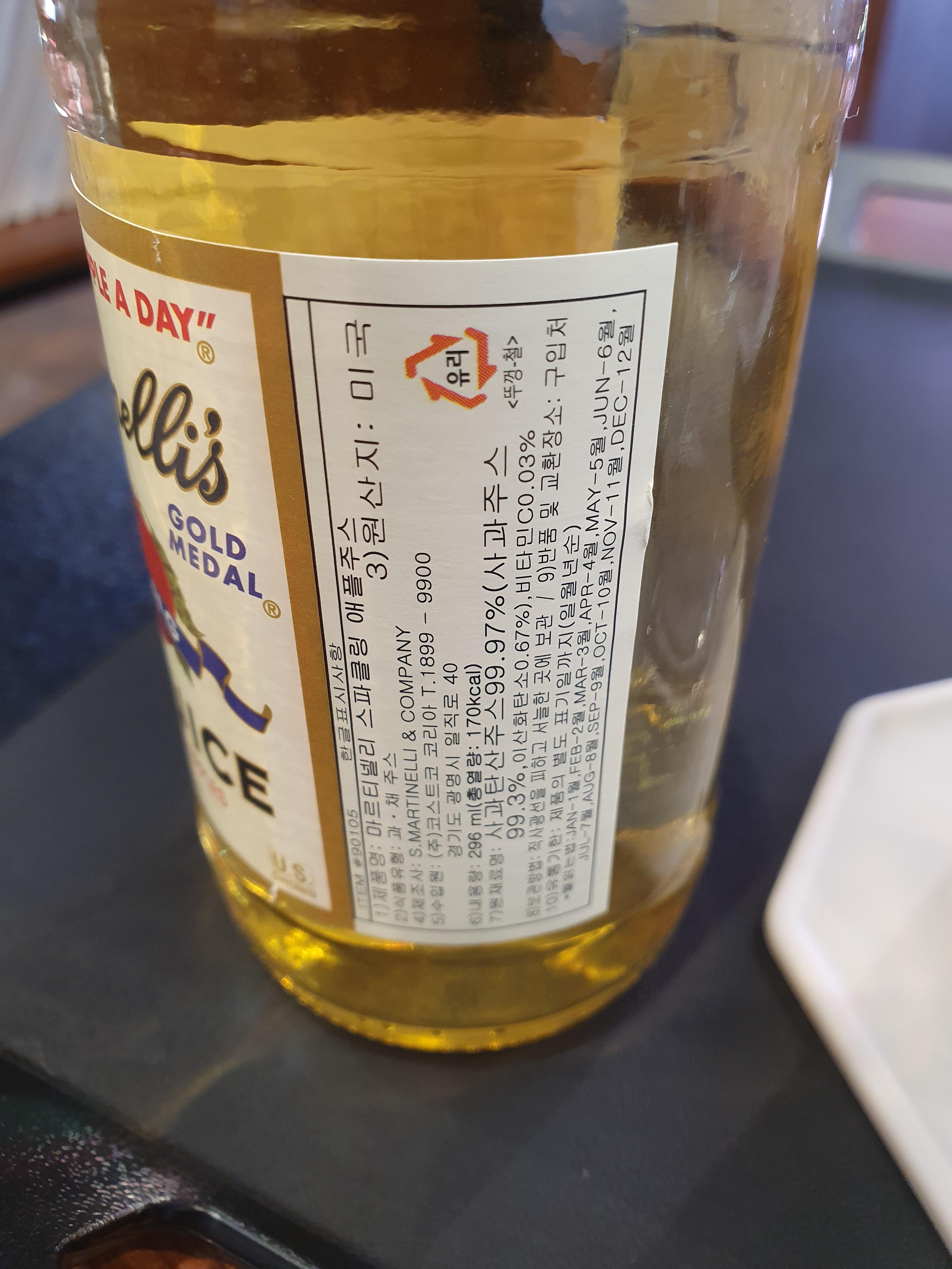 한 카페에 갔다가 마르티넬리 스파클링 애플주스가 있어서 시켜보았습니다.