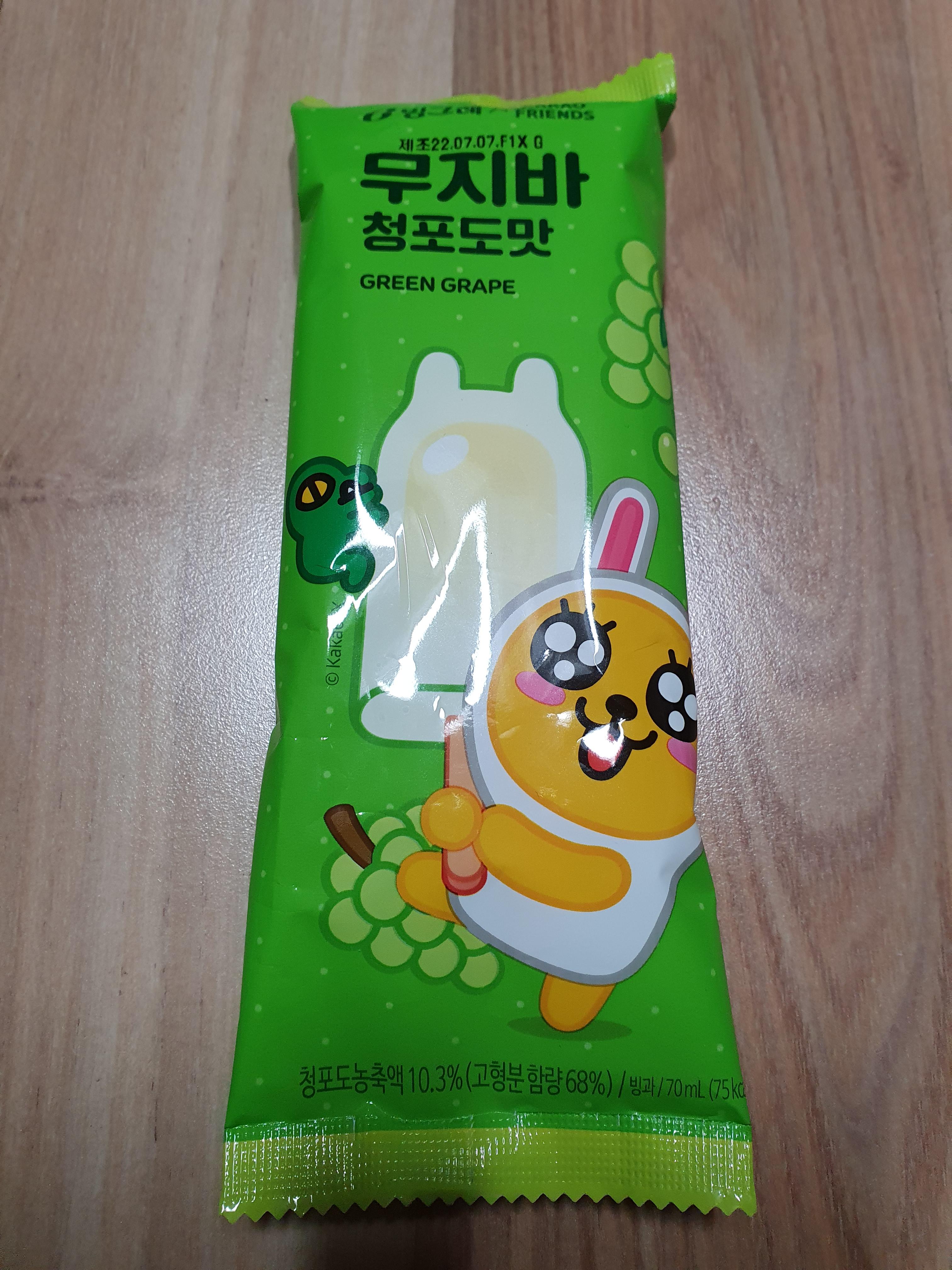 마트에 갔다가 빙그레에서 나온 아이스크림 무지바 청포도맛을 사왔습니다.