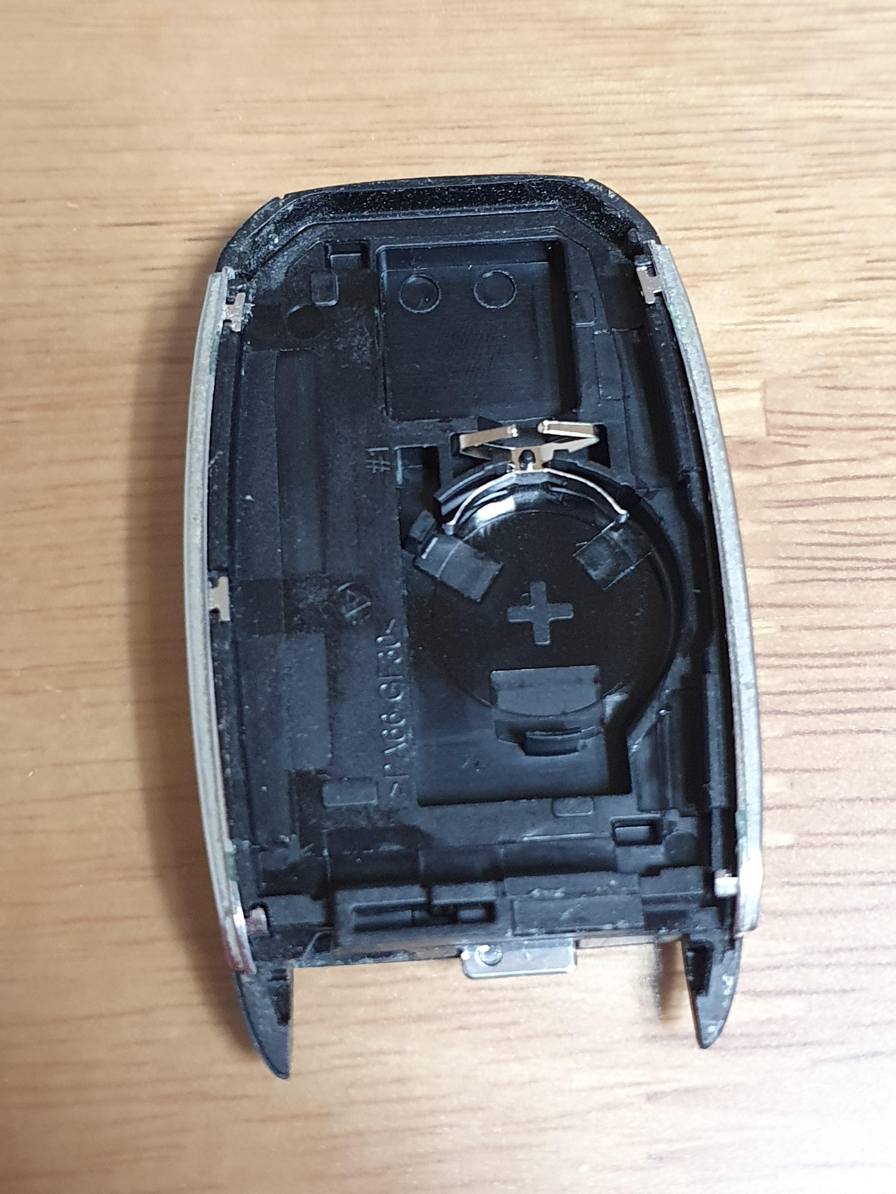 이렇게 분리된 자동차키를 보면 바로 자동차키 배터리가 들어 있는 것을 볼 수 있습니다.