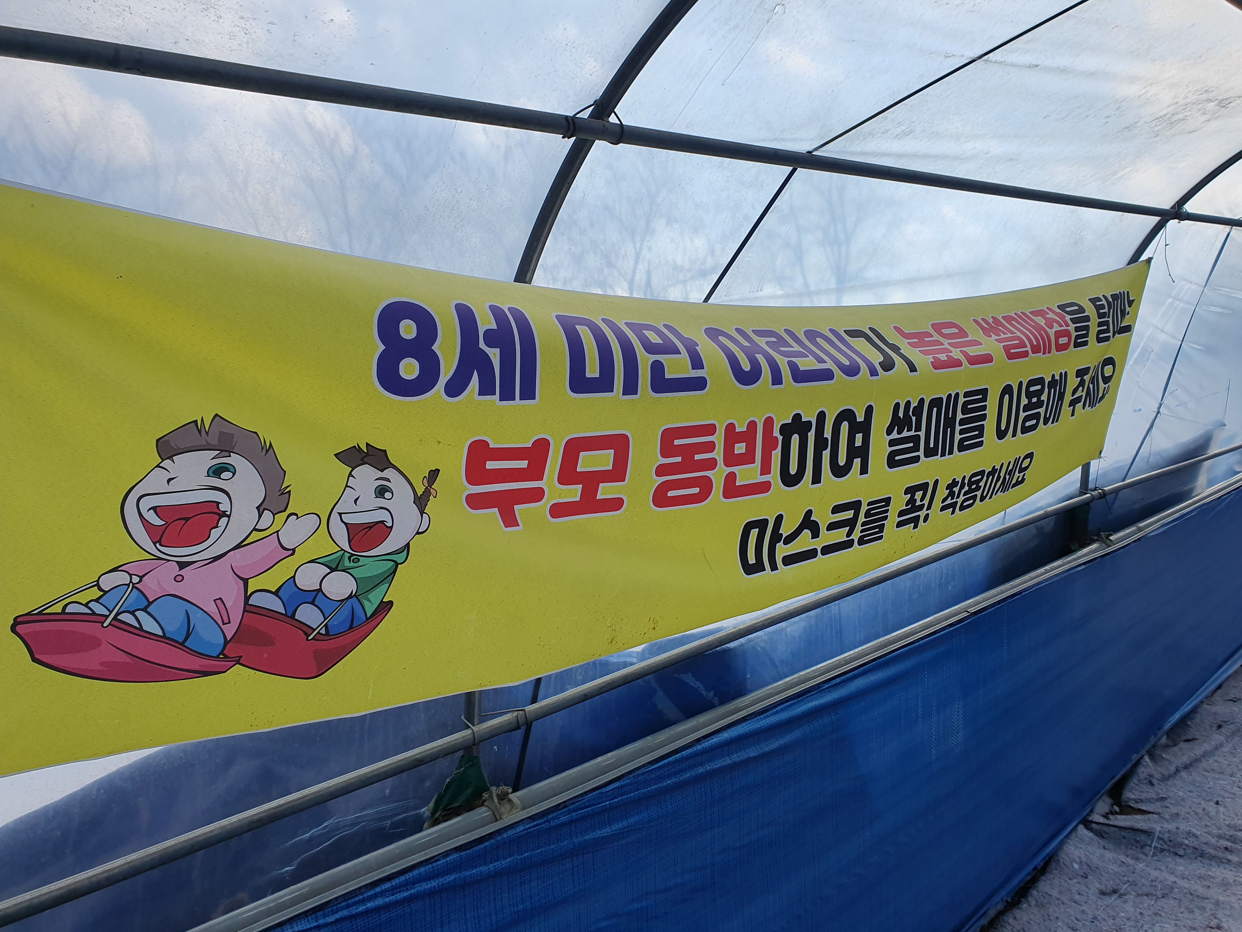 8세 미만 어린이는 부모와 동반하여 썰매를 탈 수 있습니다!