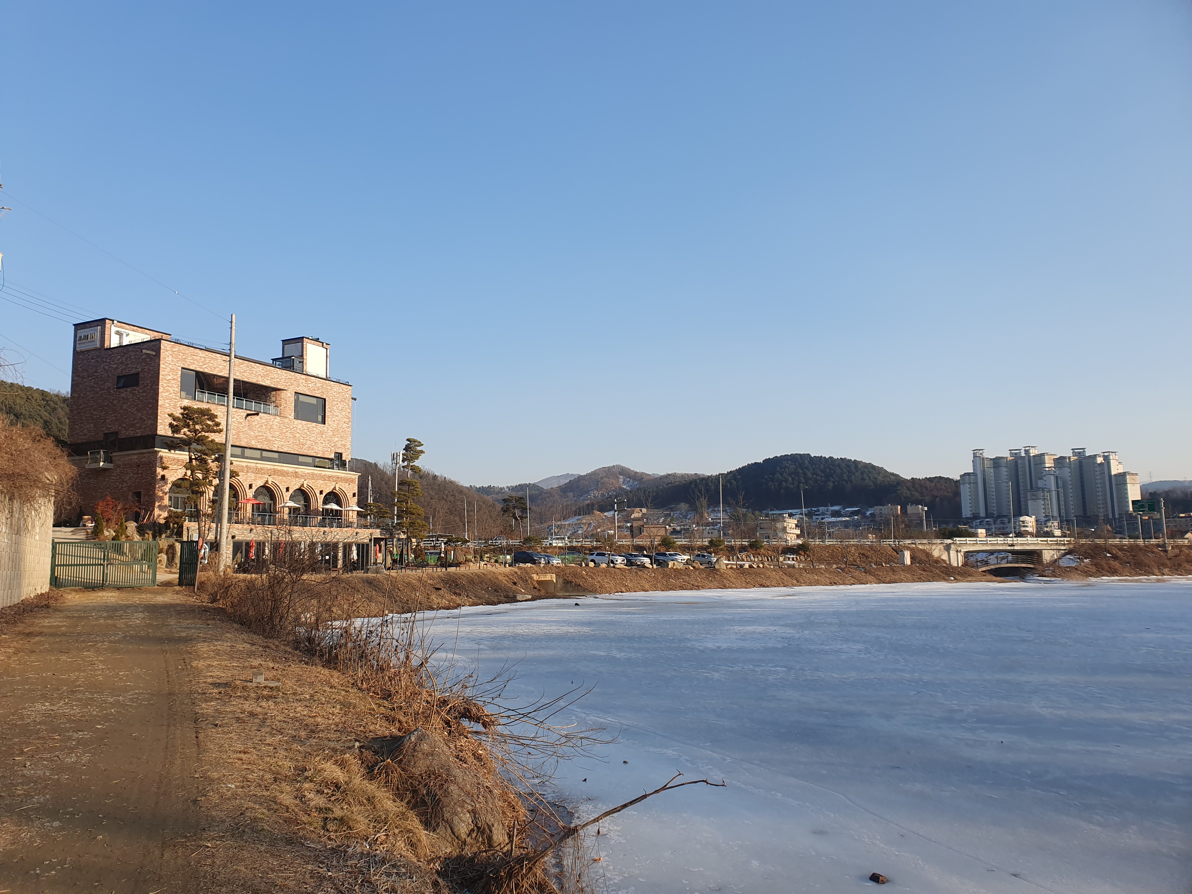 미원천을 따라 아이들과 함께 산책을 해보았습니다. 멀리서 바라본 자잠157입니다.