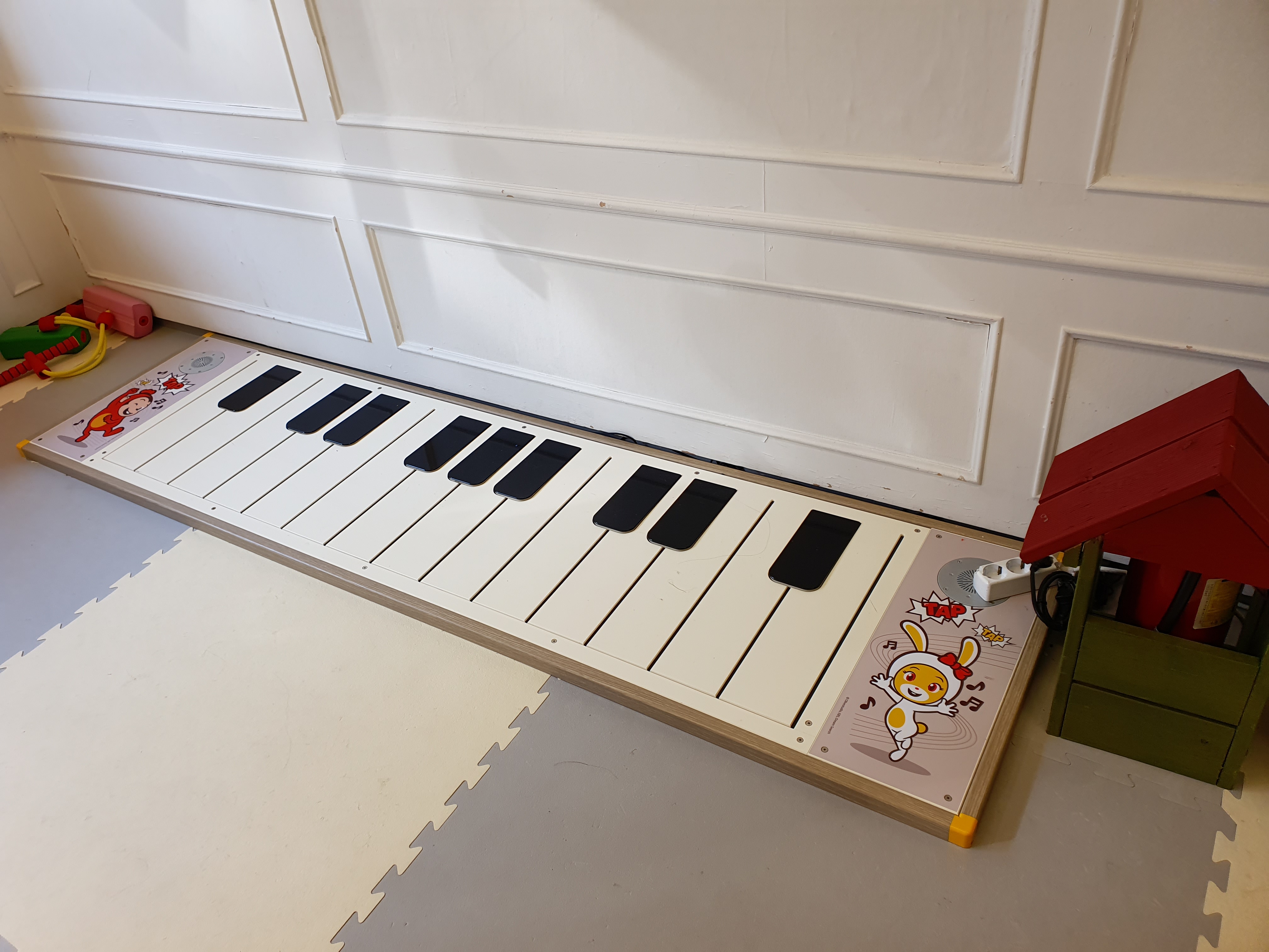 발로 칠 수 있는 피아노가 있어서 피아노를 가지고 놀 수 있습니다.