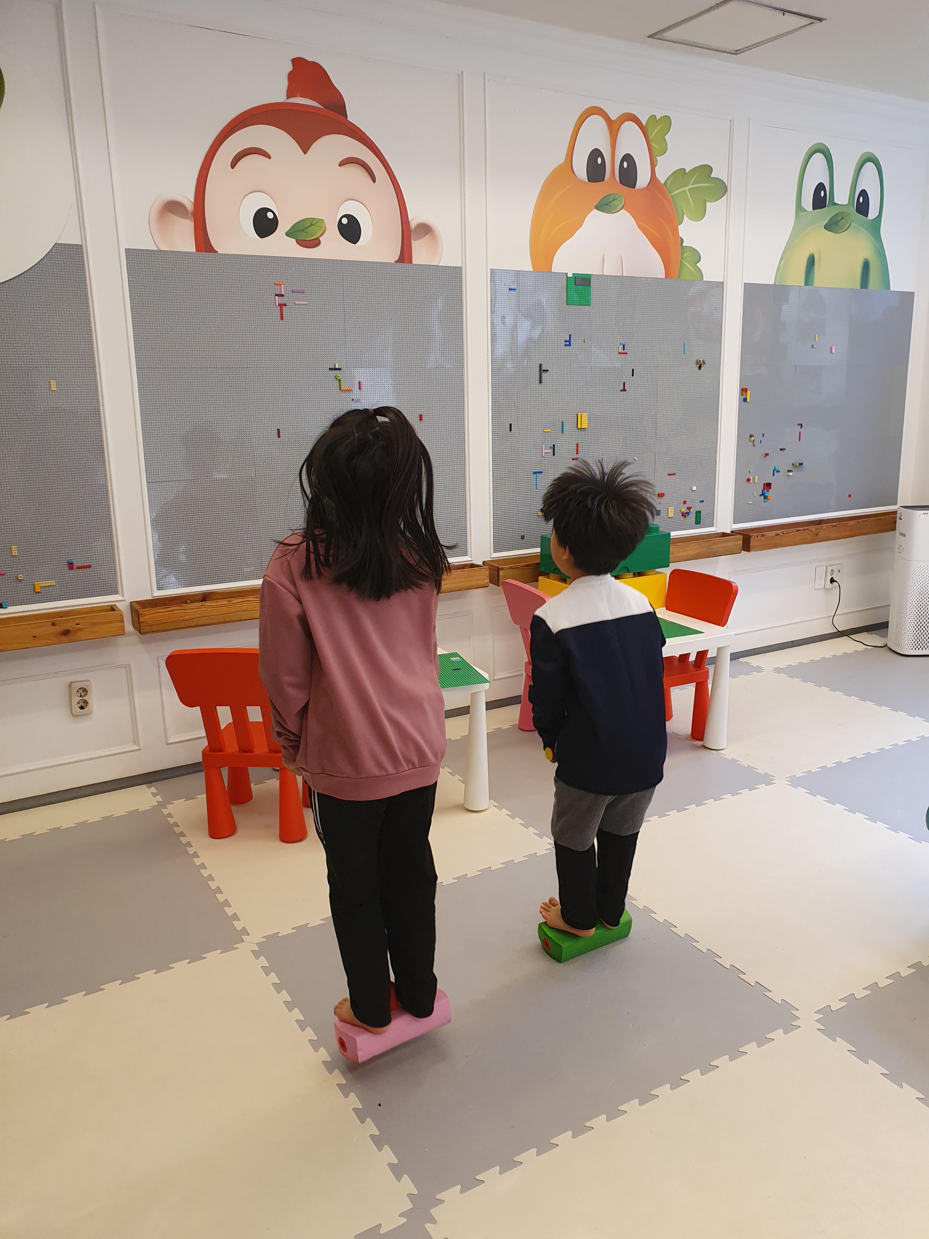 블록월에서 레고를 가지고 놀 수 있습니다.