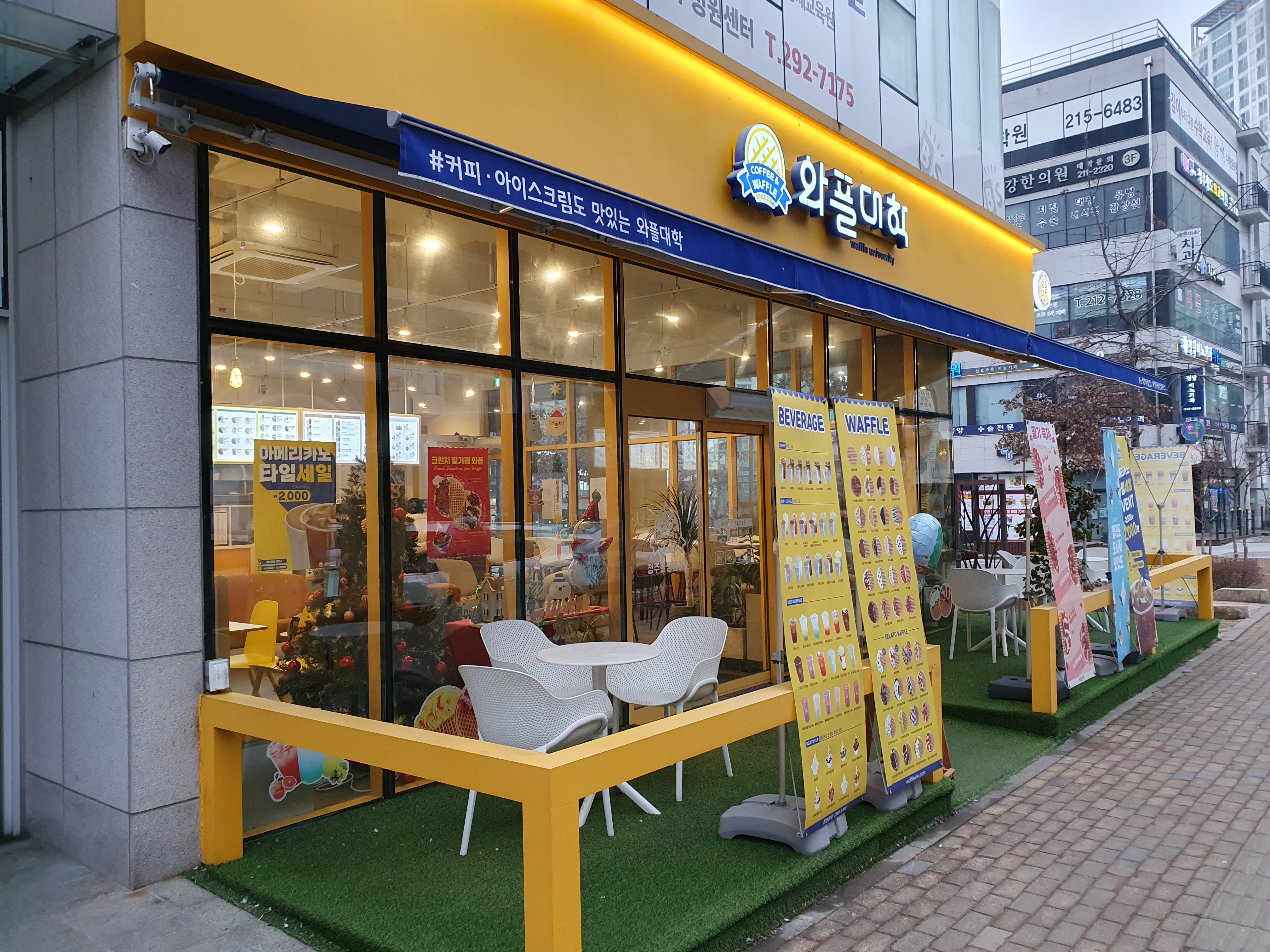 아이들과 함께 맛있게 저녁을 먹고서 디저트를 먹으러 율량동에 있는 와플대학을 찾았습니다.