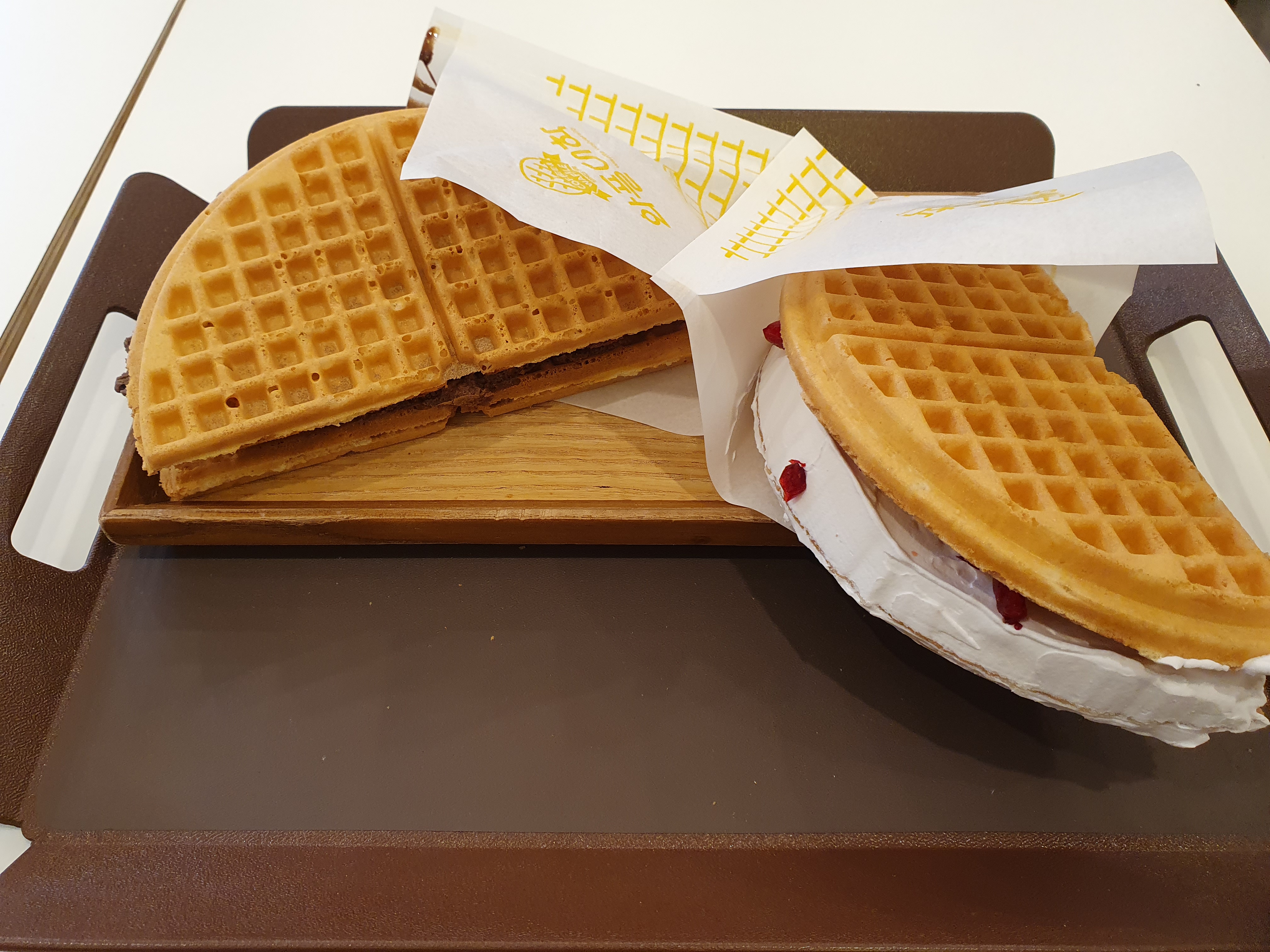 크림와플을 시켰습니다. 크림도 여러 종류를 선택할 수 있고, 토핑도 여러개중에 선택할 수 있습니다.