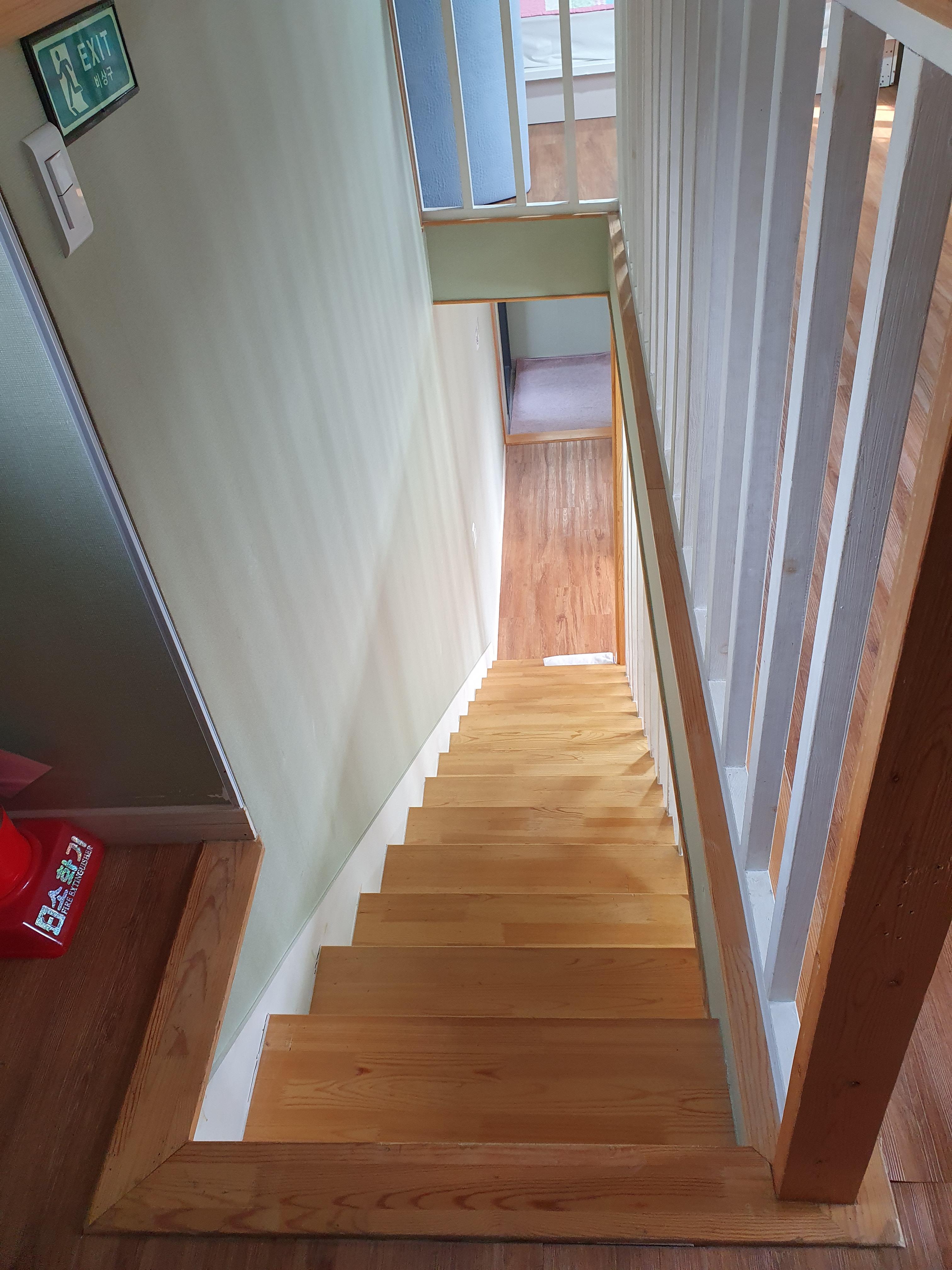 복층에서 내려다본 계단입니다. 계단이 잘 연결되어 있어서 복층에 쉽게 다닐 수 있습니다.