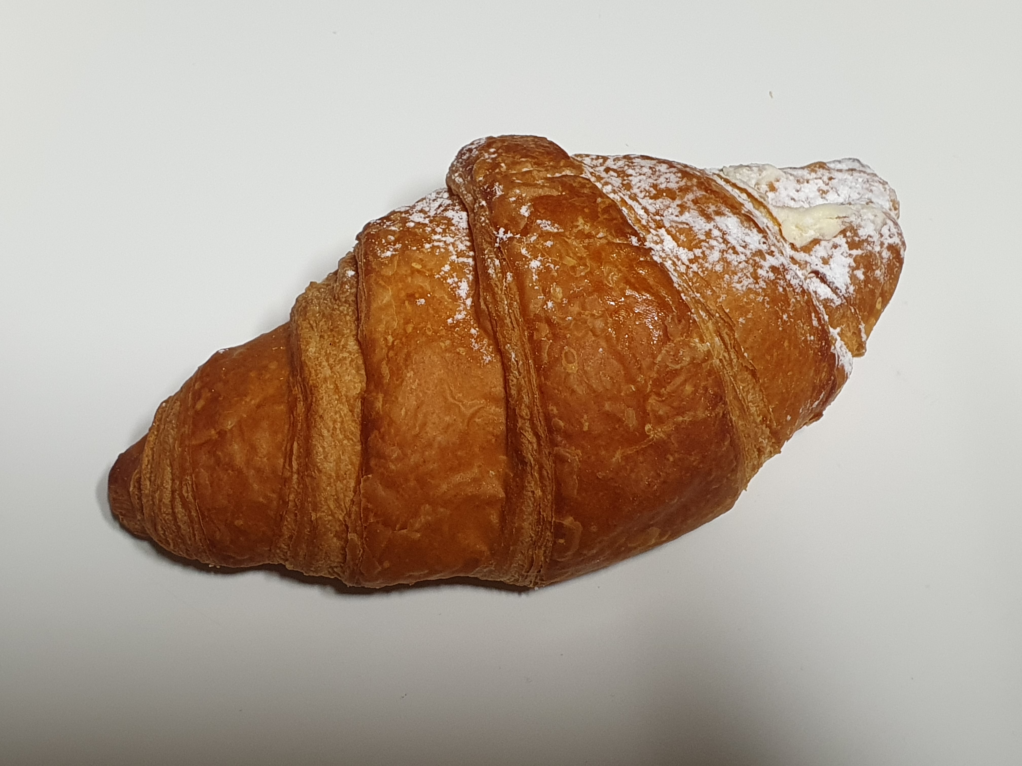 크라상안에 생크림이 가득 들어 있고, 위에도 하얀 가루가 뿌려져있습니다.