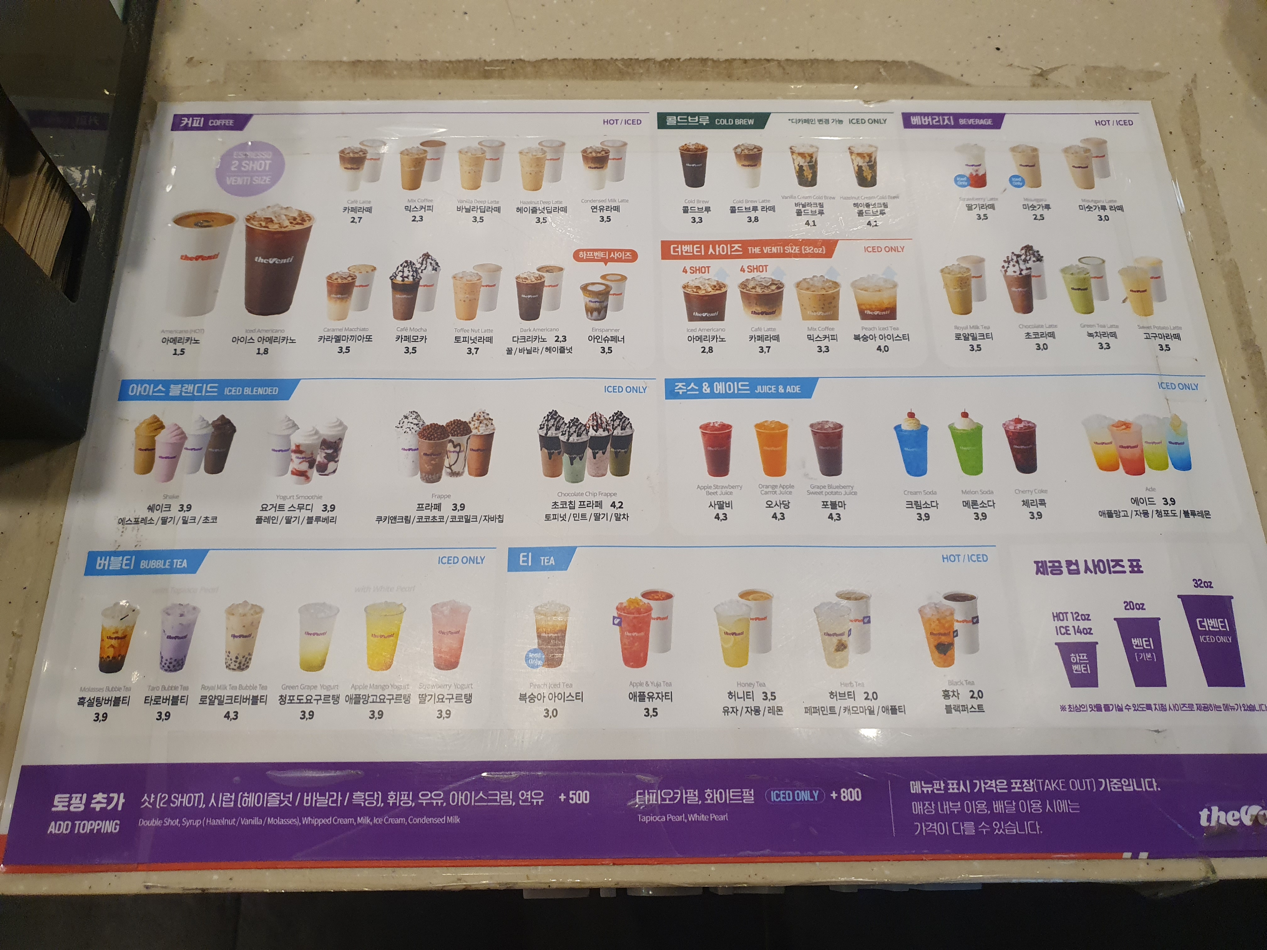 더벤티 메뉴판입니다.