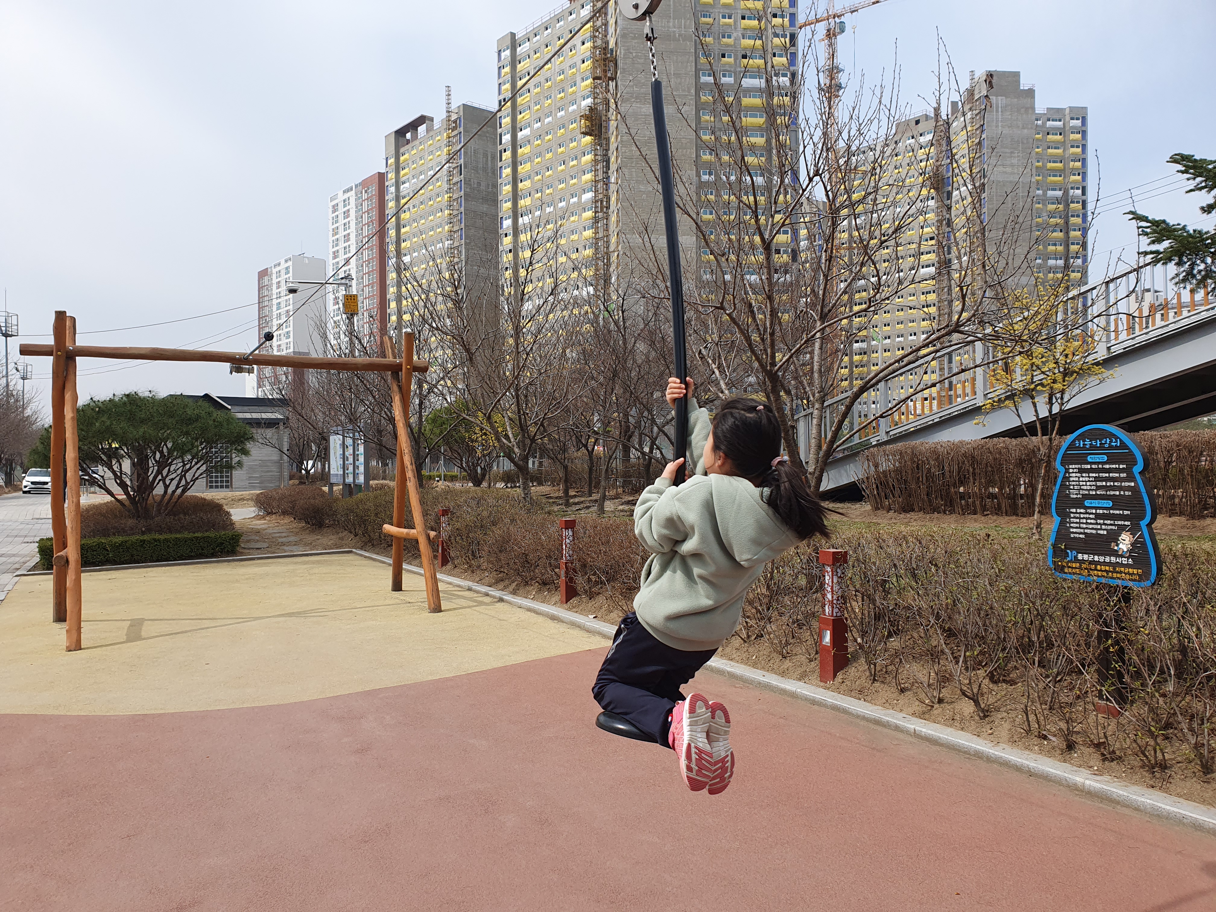 다양한 놀이기구들 중에 아이들이 가장 많이 놀았던 하늘다람쥐입니다.