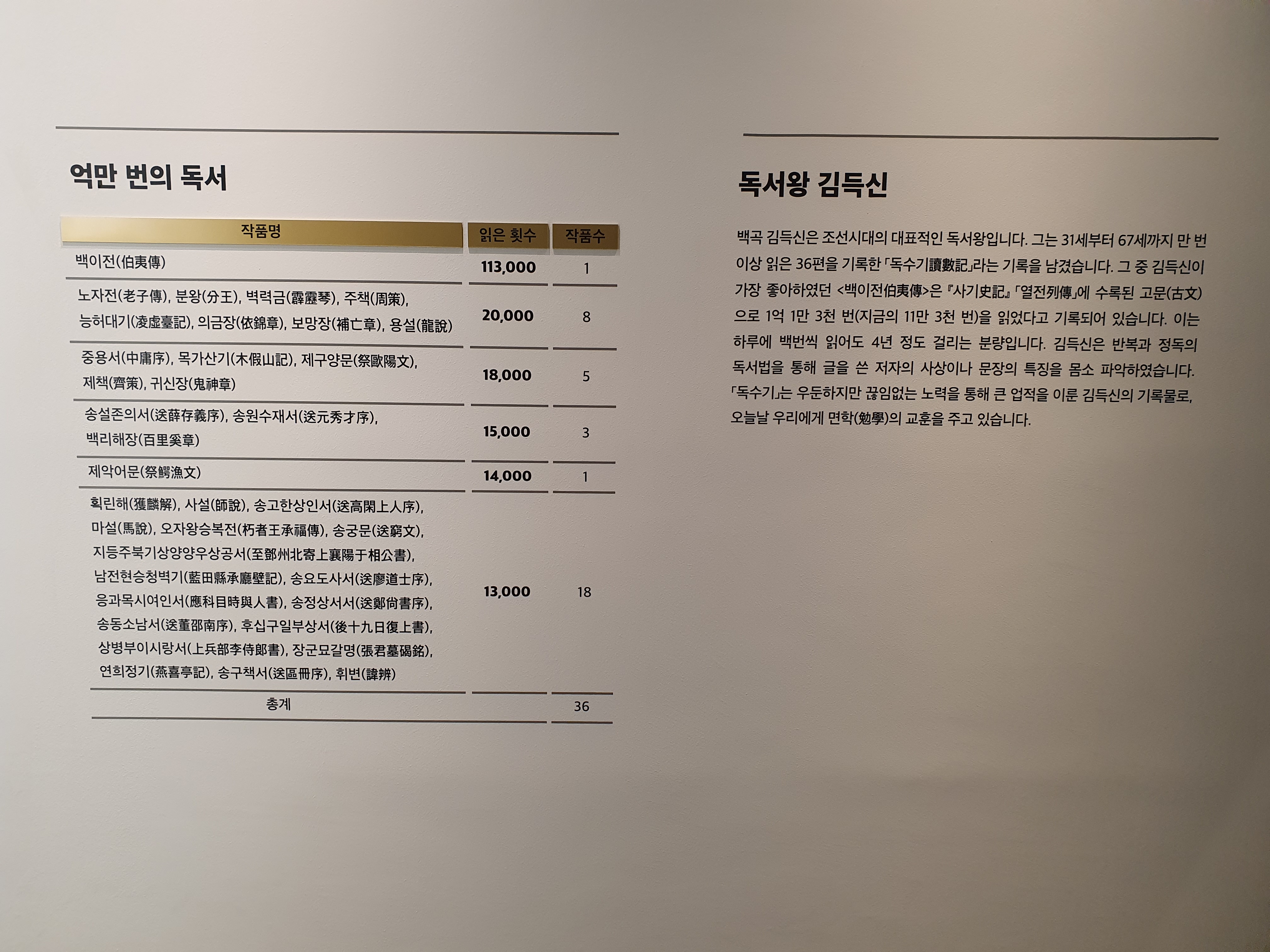 백이전이란 한권의 책을 11만3천번 읽었다니 정말 믿기지 않습니다.